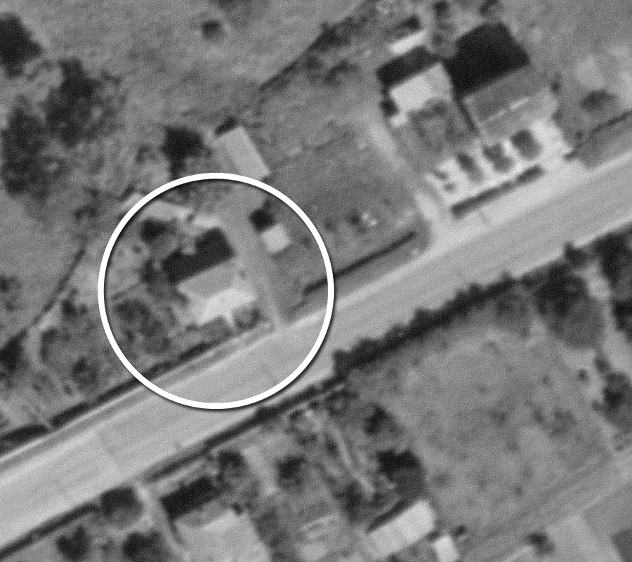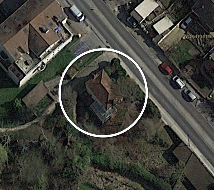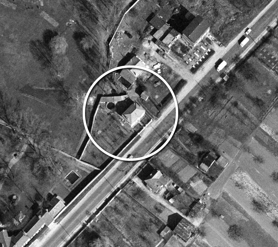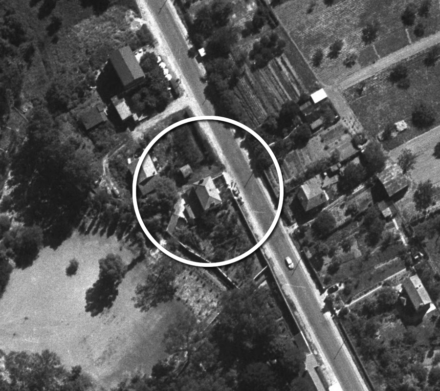 Je n’ai pas réussi à connaitre l’histoire de cette maison, mais une chose est sûre, elle est très ancienne : la première vue aérienne où elle apparait date de 1953, ci-dessous. |