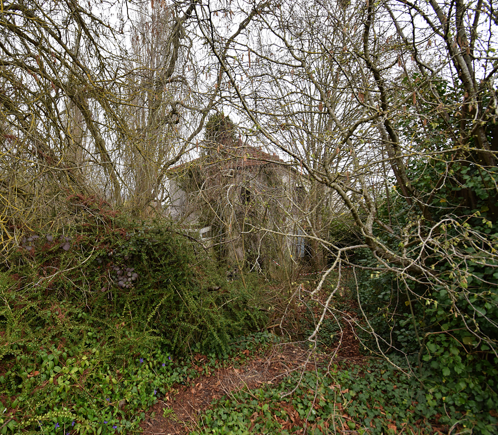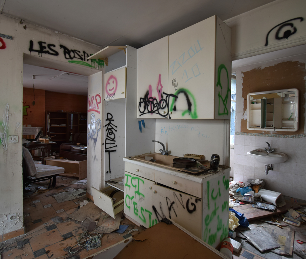 Voici une maison repérée par hasard au cours d’une promenade à vélo avec des amis. La lugubre maison aux fenêtres ouvertes m’avait tapé dans l’œil avec son lierre et son portail rouillé entrouvert, comme une invitation... Pour autant, ayant une mémoire de poisson rouge, j’oubliai de la noter sur ma carte le jour-même, et finissais par l’oublier. Et puis, trois ans plus tard, l’ami avec qui nous étions passé devant en vélo m’envoie des photos de l’intérieur de la maison, prises lors d’une autre promenade en vélo. Les photos montraient un intérieur ravagé, squatté, en vrac, mais aussi incendié. Voyant que la bâtisse risquait (probablement) de finir démolie dans un futur proche, je décidai de m’y rendre en compagnie de mon camarade de vélo afin de documenter ce qu’il en restait. Une fois garé à dizaine de mètres, la maison a le même aspect que lors du premier repérage. Toujours cet aspect un peu lugubre, et ce lierre grimpant sur la bâtisse. Si cette première vision semble prometteuse en termes d’exploration, la deuxième photo montre un arrière tagué, signe que la maison a dû subir d’innombrables visites pas forcément bien intentionnées... Mais qu’importe, je suis venu là pour documenter un lieu qui va disparaitre, alors allons-y. |