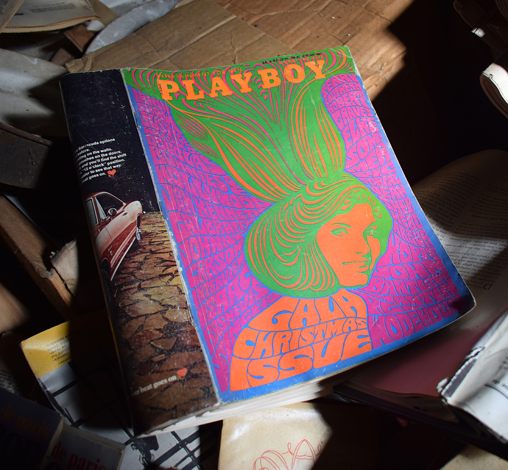 Enfin, la visite de cette maison au triste destin se termine par un grenier, qui recèle quelques trésors inavouables, entreposés ici par l’ancien occupant j’imagine. Pêle-mêle, des revues érotiques, pornographiques, cinématographiques, photographiques etc. Mais si tout cela est vite lassant, il faut dire que la couverture psychédélique du Playboy «Gala Christmas Issue» n’est pas inintéressante d’un point de vue graphique. Tout comme ce Pariscope de 1983 avec «Le Retour du Jedi» en couverture, plutôt collector ! De quoi avoir la célèbre musique du film dans la tête pendant que je range mes affaires et que je quitte les lieux… Quel sera le futur de cette maison ? Aucune idée. Je doute qu’elle soit rénovée un jour, mais on ne sait jamais ? |