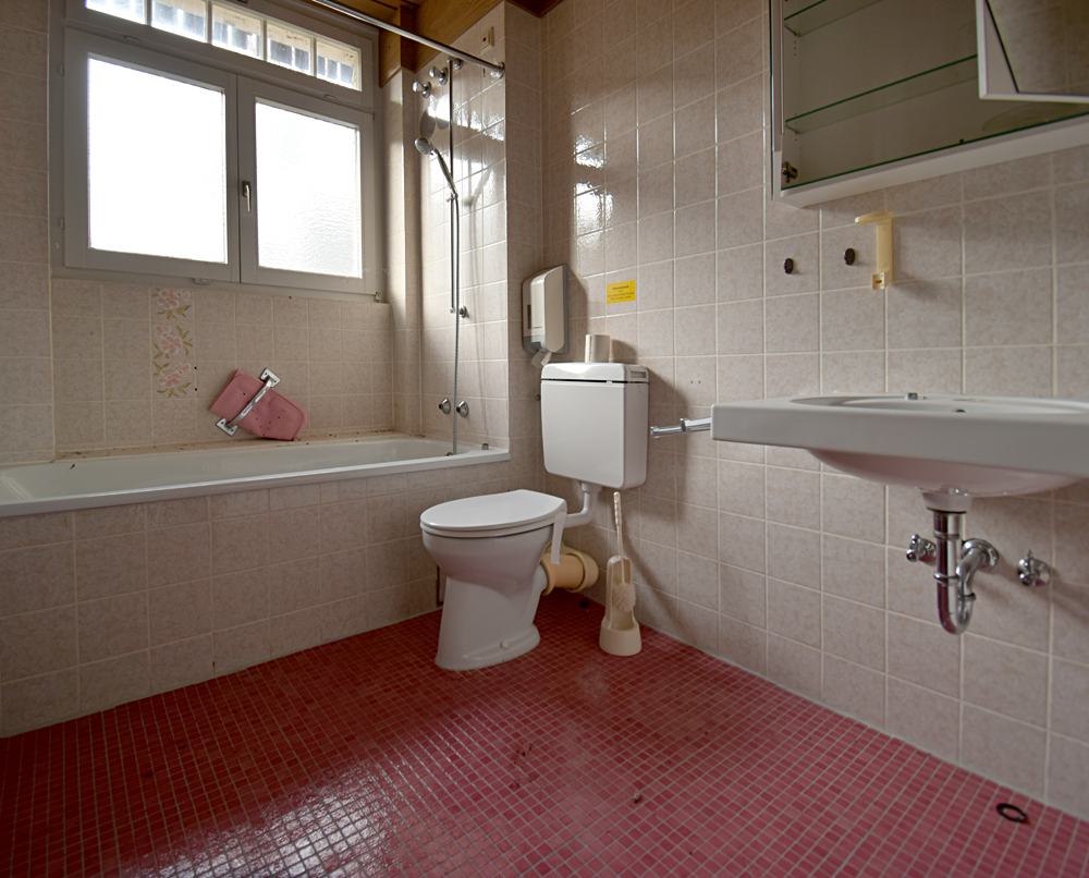 retournons à la salle de bain par laquelle nous sommes entrés. Et