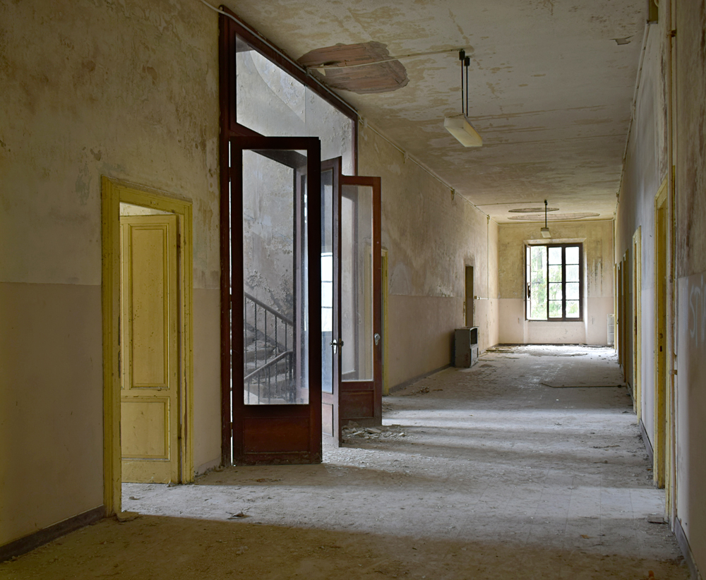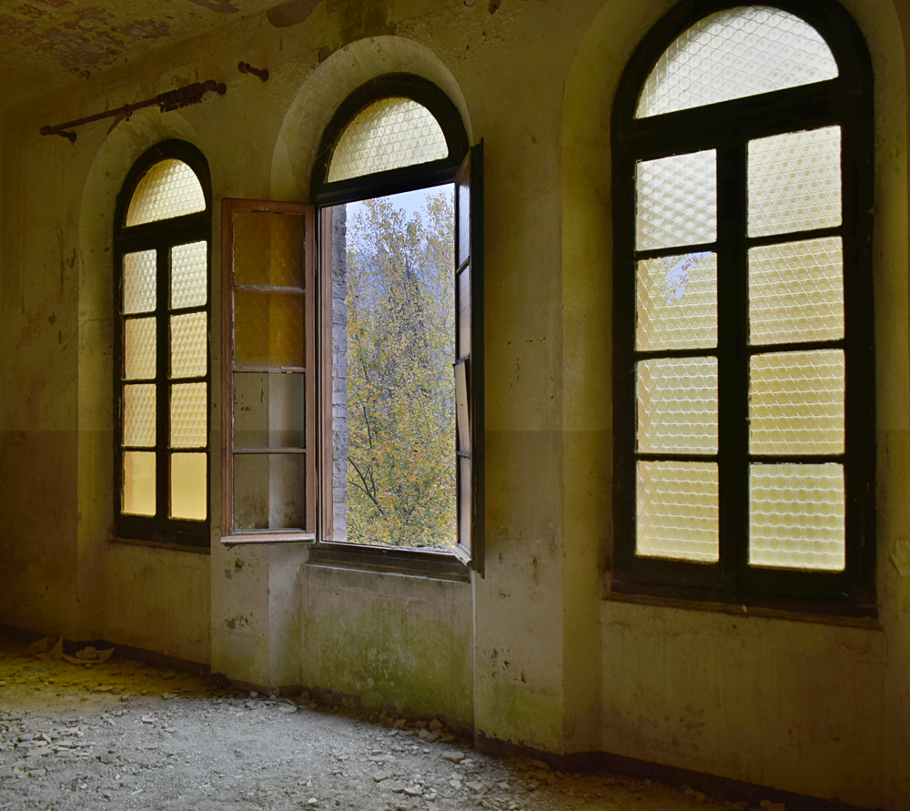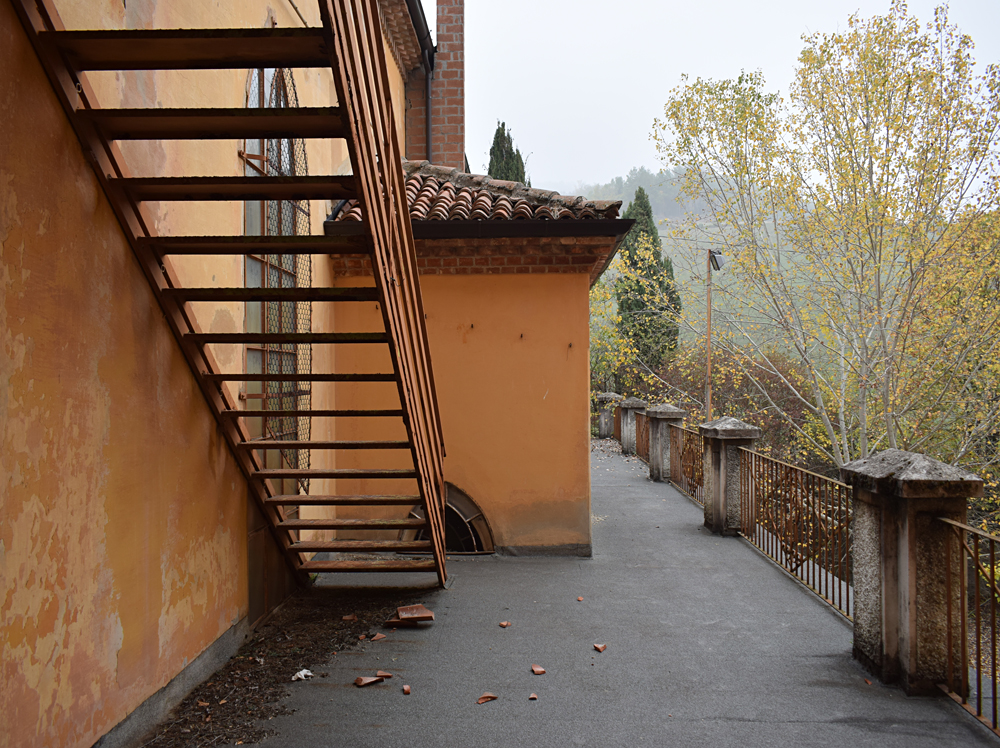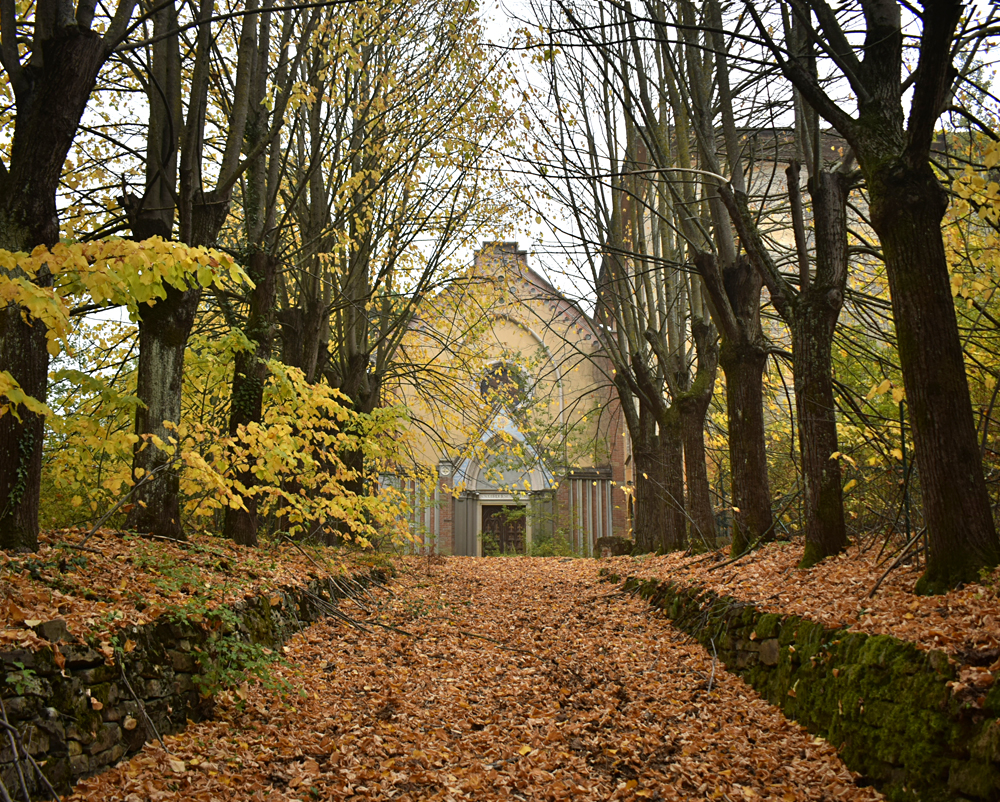 2017. Le matin de notre arrivée, la vallée est envahie de brume. Rien de tel pour poser une ambiance fantomatique à souhait avant d’aller visiter un ancien séminaire comportant une chapelle encore très bien conservée. Une fois garés, nous passons dans le petit hameau nous menant au site, mais mauvaise surprise : le chemin s’arrête net avec un panneau «Propriété Privée» condamnant l’accès au chemin. Opérer un demi-tour n’est pas bien compliqué, mais entendre deux ou trois chiens aboyer ne nous rassure pas : les habitants pourraient prévenir la Police, sachant pertinemment ce que nous venons voir. Après avoir fait un petit tour, nous trouvons un autre passage (tout à fait officiel et que je n’avais pas pu voir depuis Google Maps) puis montons vers l’ancien séminaire. Marcher dans toutes ces feuilles jaunes en se dirigeant vers un lieu lui-même jaunâtre est fascinant, surtout lorsque l’on vient pour la chapelle, qui elle est d’une toute autre couleur. Un trou dans le grillage, une porte ouverte, et nous voilà à déambuler dans les sombres et silencieux couloirs de l’ancienne bâtisse aujourd’hui à l’abandon, et aussi aride que la rivière asséchée située en contrebas. |