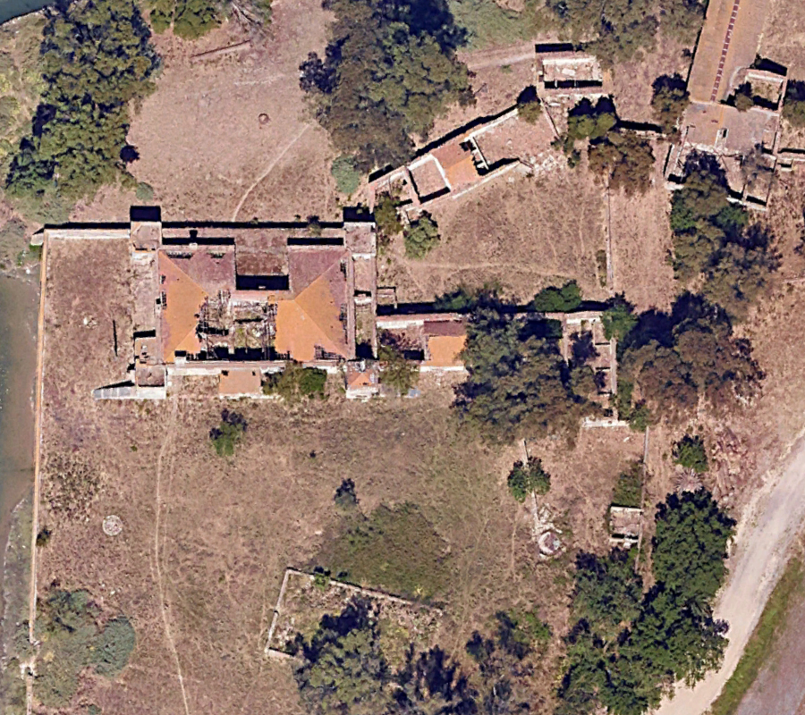 Il existe peu de documentation sur ce domaine agricole. J’ai juste trouvé une trace de datation qui se situerait au 17e siècle, période de sa fondation. Deux domaines ont été associés mais je n’ai pas trouvé la raison de cette unification. Le lieu a ensuite été racheté début XXème siècle par des étrangers, puis utilisé un certain temps avant d'être abandonné on ne sait trop quand. La seule certitude est le pillage du lieu dans les années 1990. Les structures furent renforcées pour tenter de sauver le bâtiment, du moins éviter qu'il ne s'effondre totalement sur lui-même. Ci-dessous des vues aériennes allant de 2021 et 2023 : |