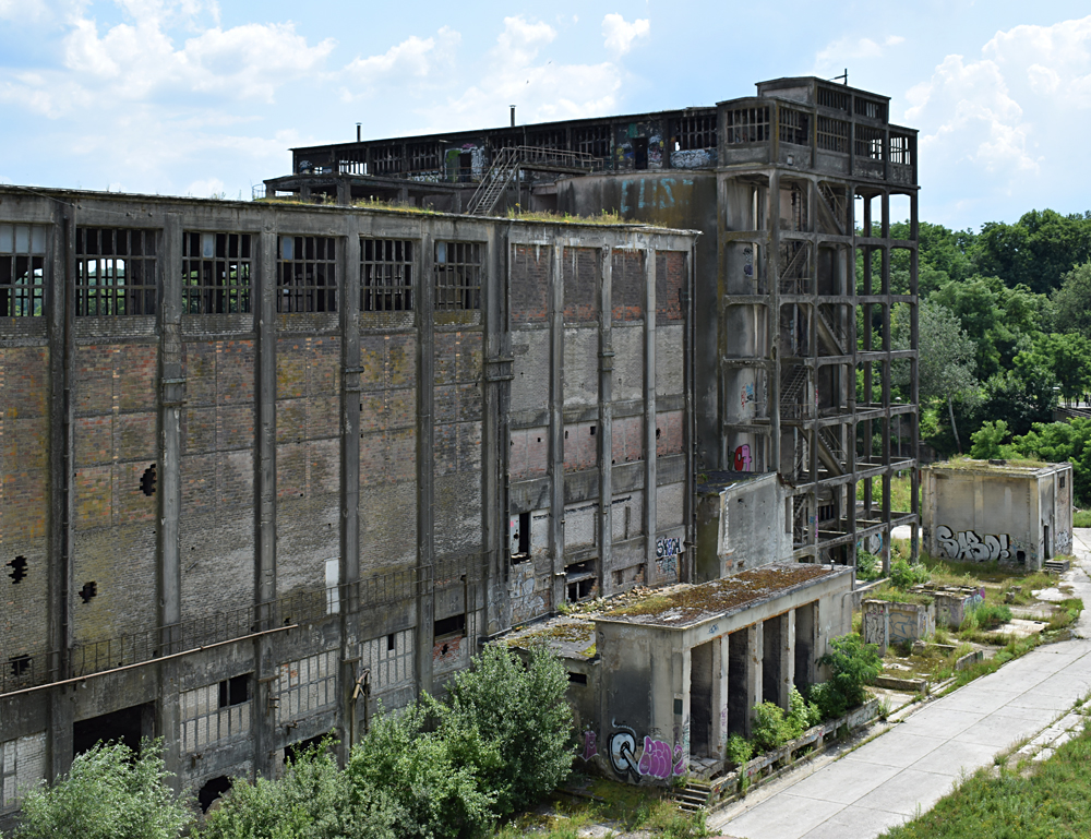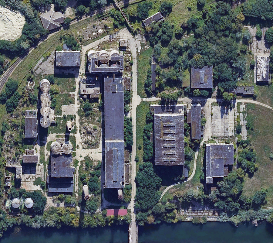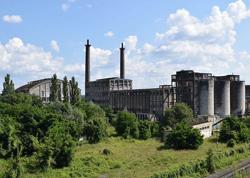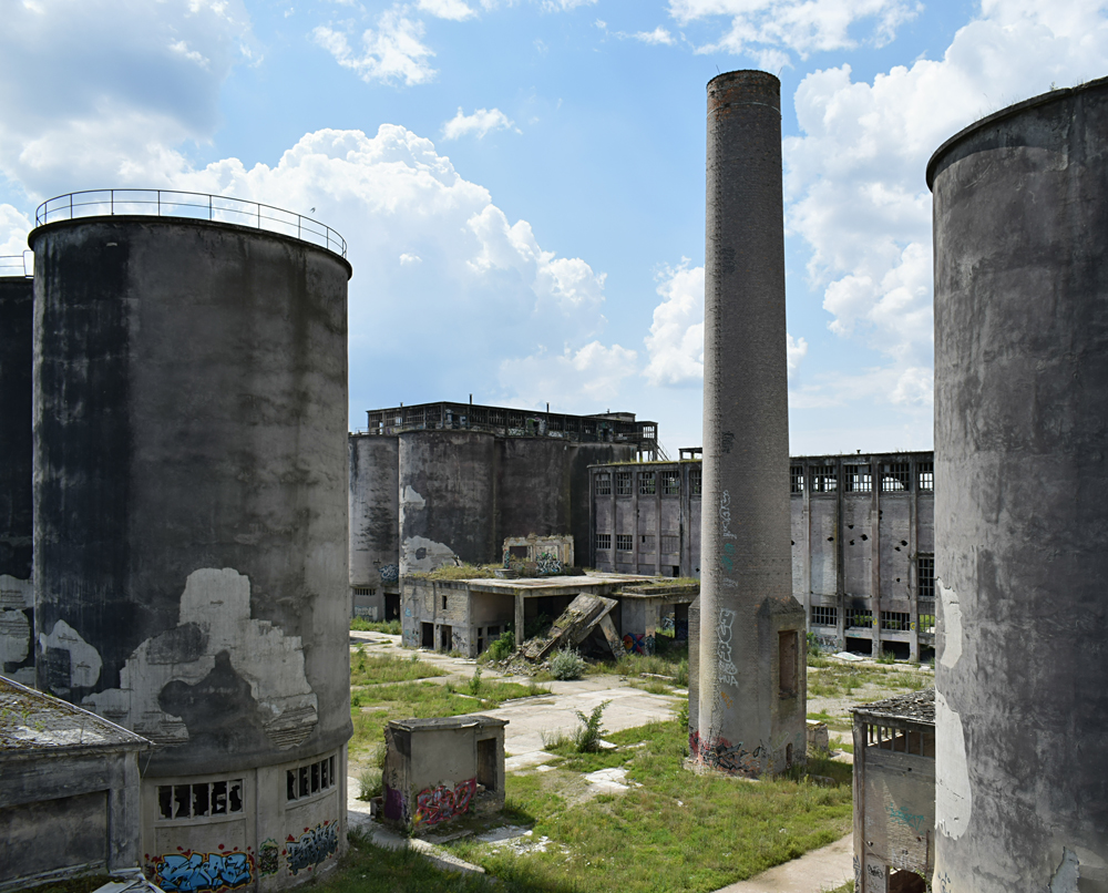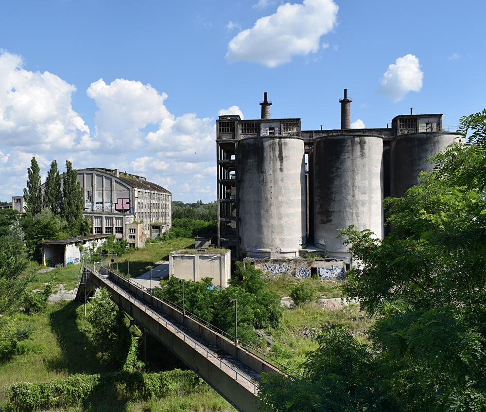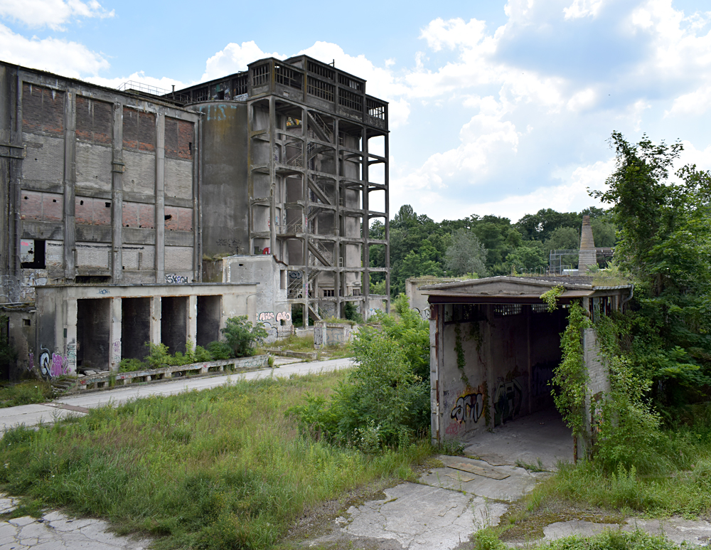 L’histoire de cette usine nous emmène au début du XXème siècle. Conçue pour produire du ciment, l’usine servit à produire de la bauxite synthétique de 1939 à 1944 lorsque les Nazis utilisèrent le lieu pour l’effort de guerre. Après l’arrivée des Russes en 1945, l’usine fut démantelée, mais dès 1950 elle reprit vie, cette fois-ci pour fabriquer des produits à base de phosphate. Au cours des 7 années qui suivirent, l’usine fut agrandie et de nouveaux bâtiments construits. La réunification sonna la fin du site, comme pour de nombreuses autres usines. Le dernier repas eut lieu en 1999. Ci-dessous des vues aériennes allant de 2001 à 2023 : |