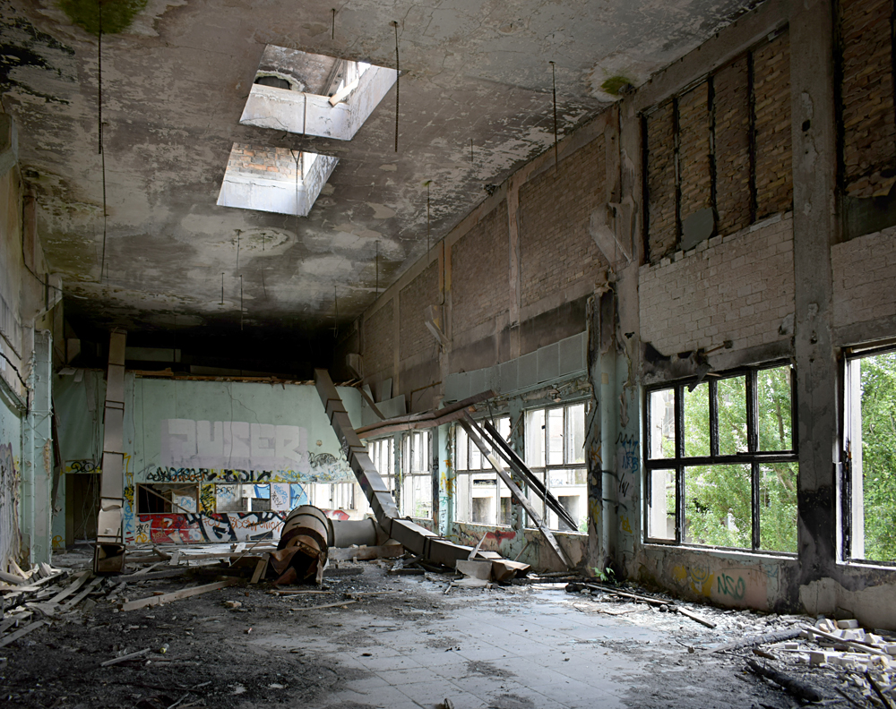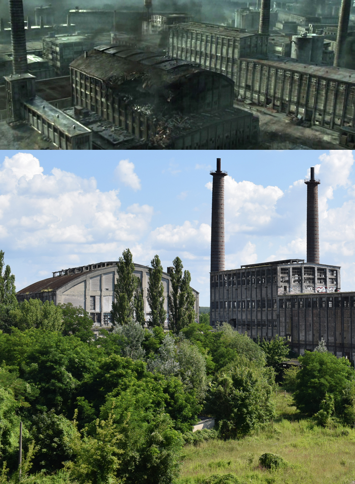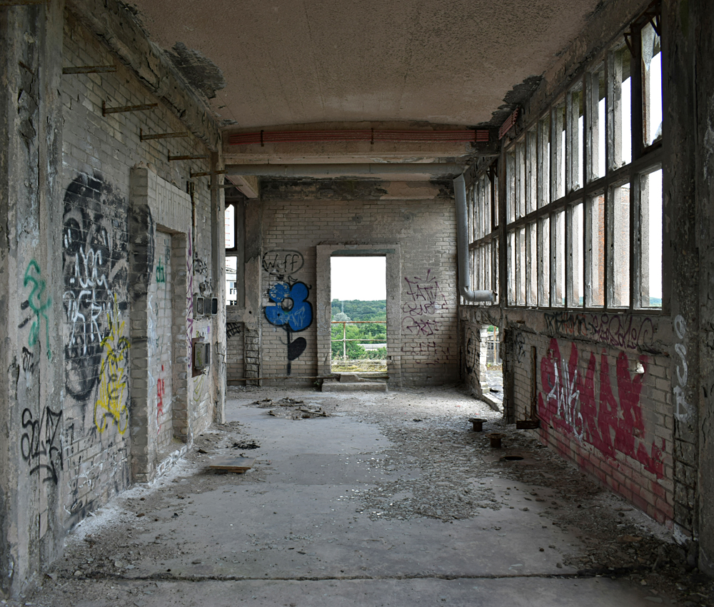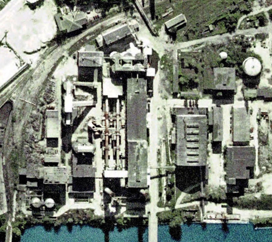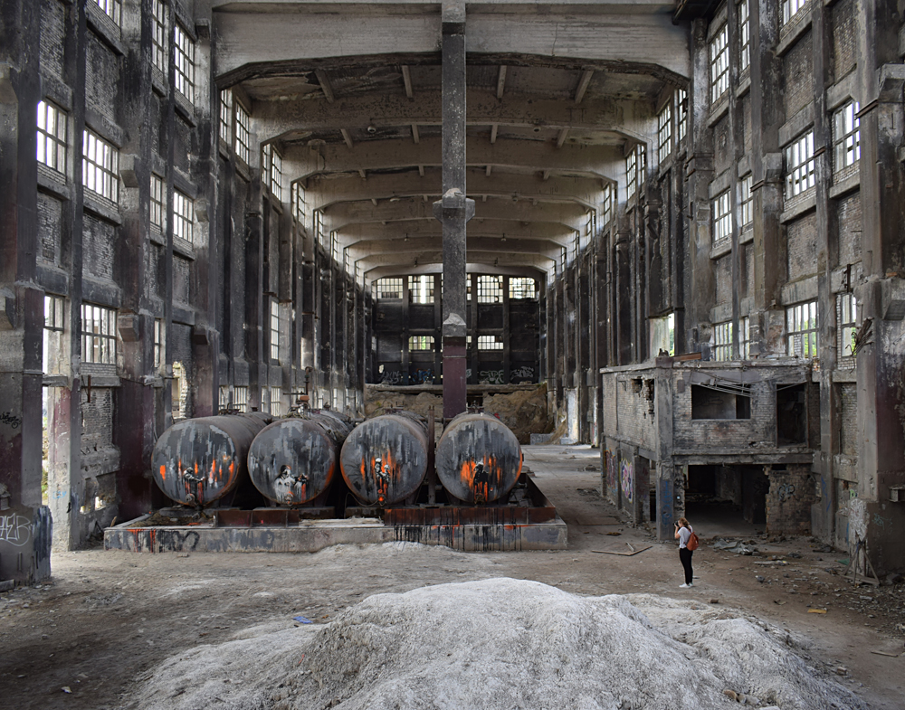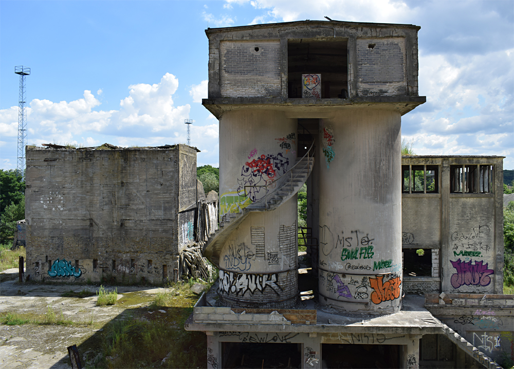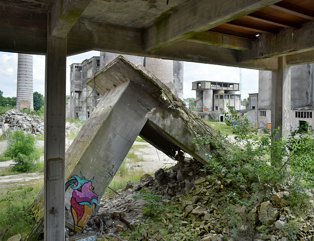 L’histoire de cette usine nous emmène au début du XXème siècle. Conçue pour produire du ciment, l’usine servit à produire de la bauxite synthétique de 1939 à 1944 lorsque les Nazis utilisèrent le lieu pour l’effort de guerre. Après l’arrivée des Russes en 1945, l’usine fut démantelée, mais dès 1950 elle reprit vie, cette fois-ci pour fabriquer des produits à base de phosphate. Au cours des 7 années qui suivirent, l’usine fut agrandie et de nouveaux bâtiments construits. La réunification sonna la fin du site, comme pour de nombreuses autres usines. Le dernier repas eut lieu en 1999. Ci-dessous des vues aériennes allant de 2001 à 2023 : |