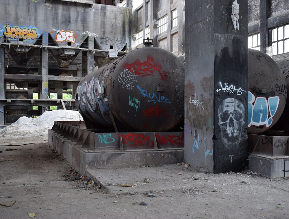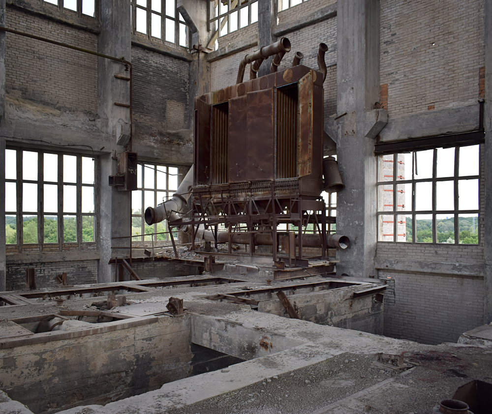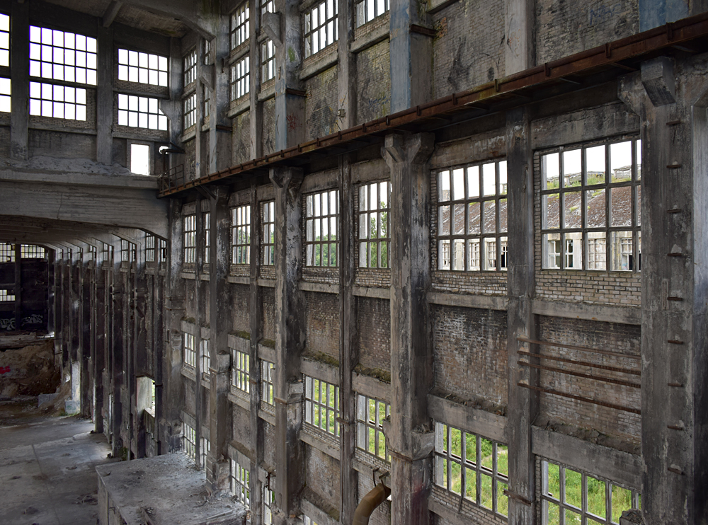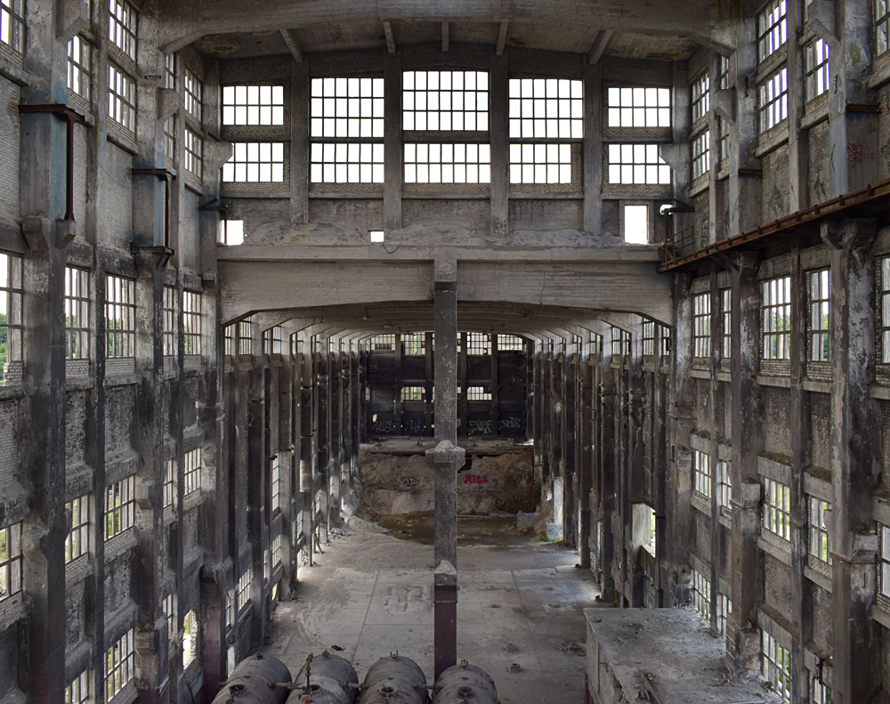 C’est réellement fou de se promener tranquillement dans un lieu aussi silencieux alors qu’il devait être très bruyant lorsqu’il était en activité. La couleur grise autour de nous me donne l’impression de visiter un cimetière, et je me mets à penser au moment où ce complexe industriel disparaitra. Impossible de ne pas faire un parallèle avec l’Usine Renault sur l’île Seguin, rasée en 2004, et dont il ne reste aujourd’hui que des photos. Il existe de très nombreux livres sur les châteaux, mais où sont les livres sur ces usines qui furent le lieu de travail de milliers de personnes travaillant dans des conditions harassantes, et que l’on rase sans aucune considération ? |