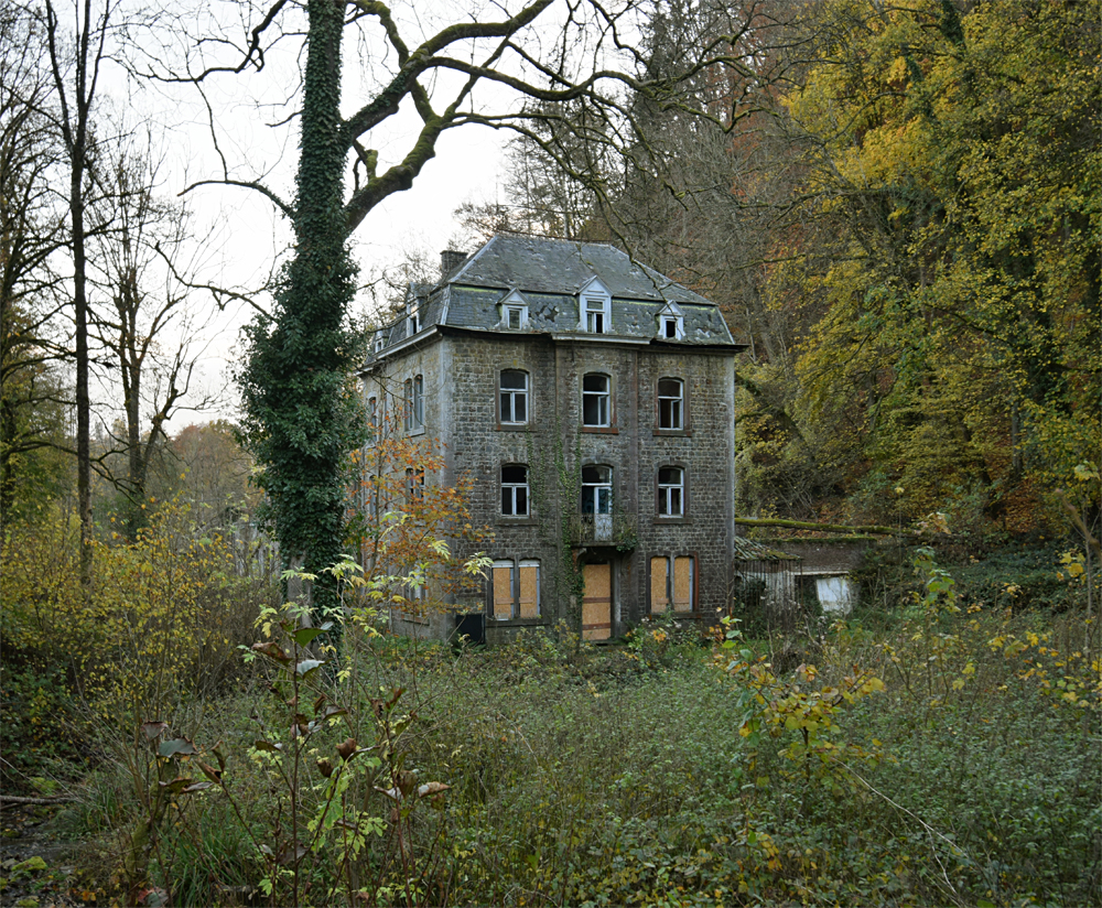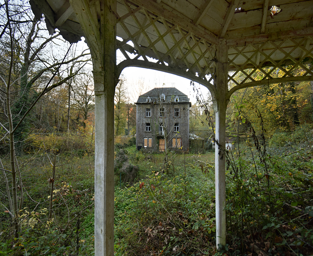 Repéré lors de la préparation d’un road trip avec des amis, cet hôtel abandonné m’avait tapé dans l’œil. Serait-il accessible ? Une fois sur place, la réponse ne se fit pas attendre : oui. On pouvait entrer sur le terrain, tourner autour, réaliser quelques clichés… Mais que valait l’intérieur ? Et bien, malheureusement, pas grand-chose. Du moins rien de motivant, au point que je ne fis pas de photos de l’intérieur du bâtiment. Des pièces vides, parfois taguées, souvent dégradées par les infiltrations… C’est surtout la lumière déclinant rapidement qui m’incita à me concentrer sur l’extérieur. Elle semblait me dire «Profites du peu de lumière qu’il te reste pour documenter l’extérieur, tant pis pour le reste !» C’est ainsi que je pris les clichés présentés sur cette page, tandis que mes camarades Aude, Guillaume et Guillaume attendaient en face, garés sur un parking. Quelle classe quand même que cette façade, non ? Et ce petit kiosque non loin de là ? Mignon comme tout ! Fermé depuis des années, l’histoire de ce lieu est foisonnante : d’abord un moulin, il devient une fabrique de mètres pliants en bois, de raquettes de tennis, et même une gendarmerie ! Aujourd’hui silencieux, aux abords d’une ville particulièrement belle, il attend de reprendre vie. |