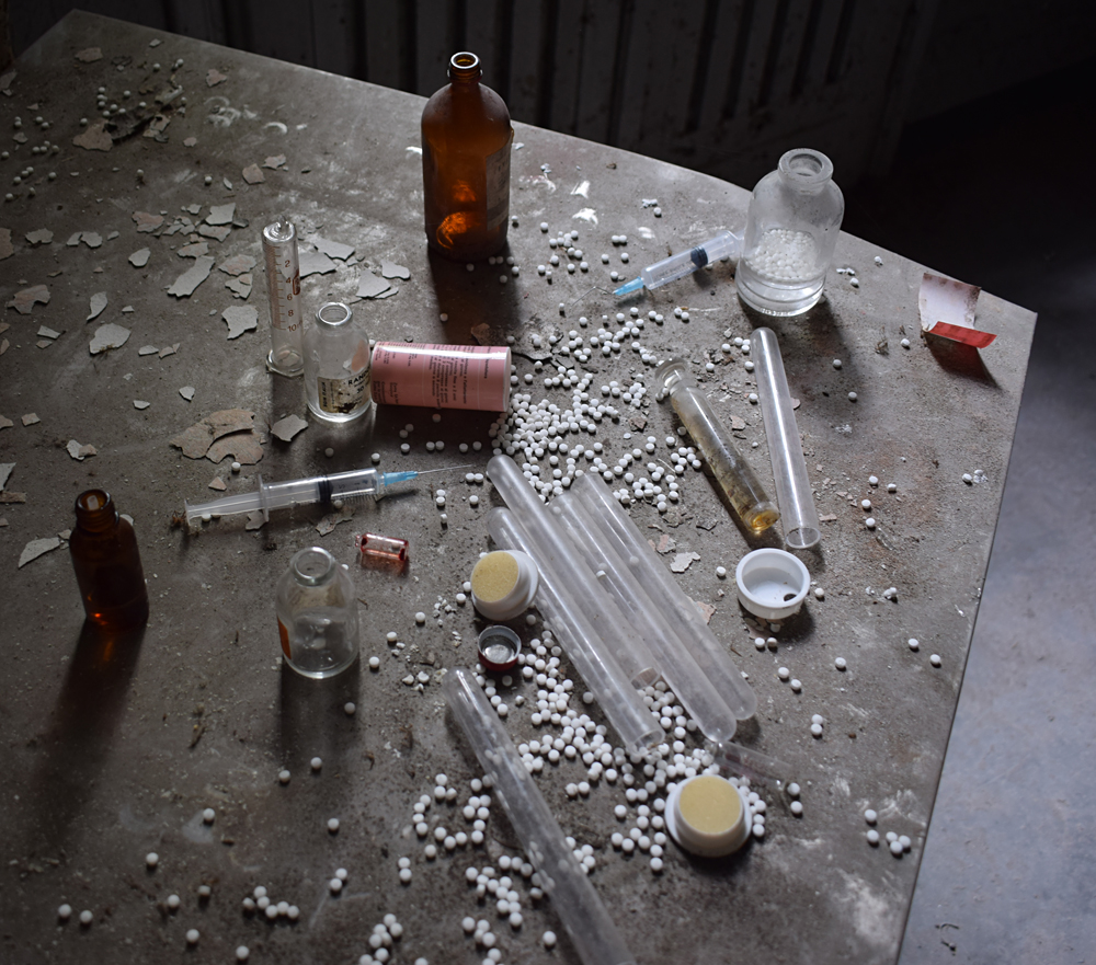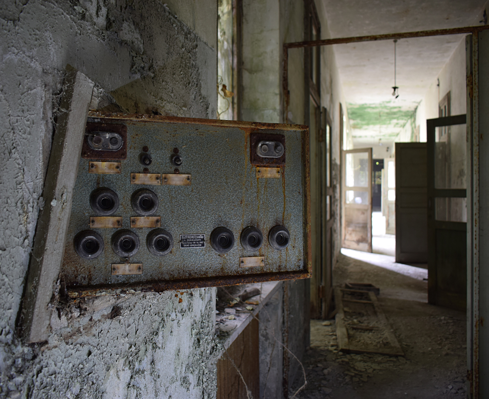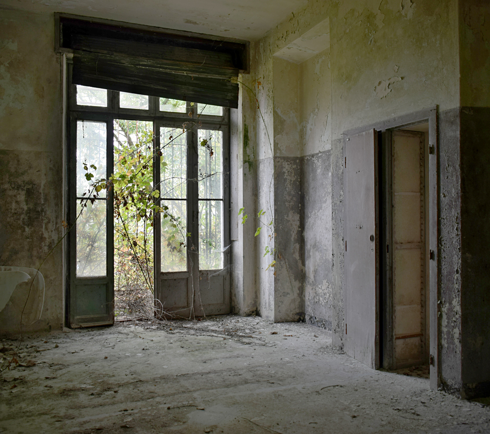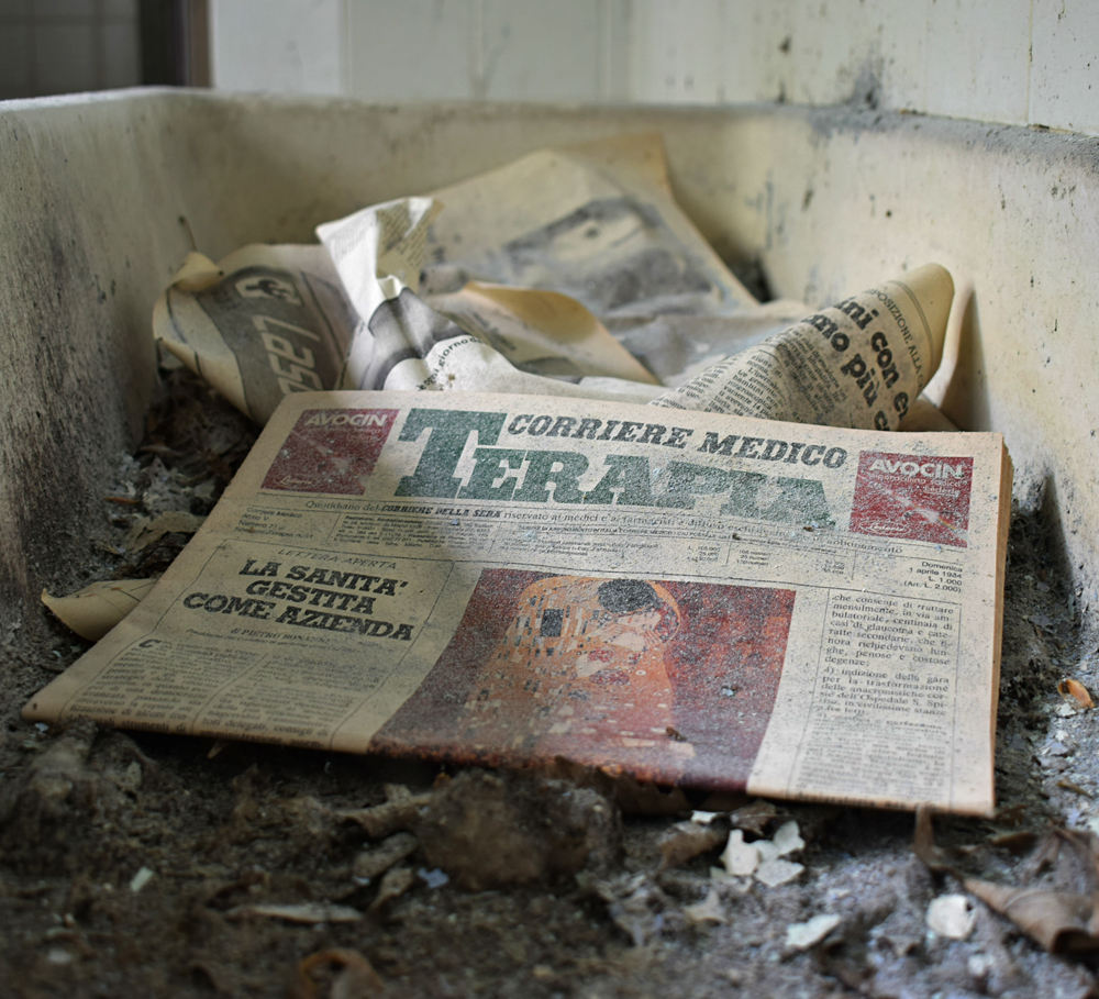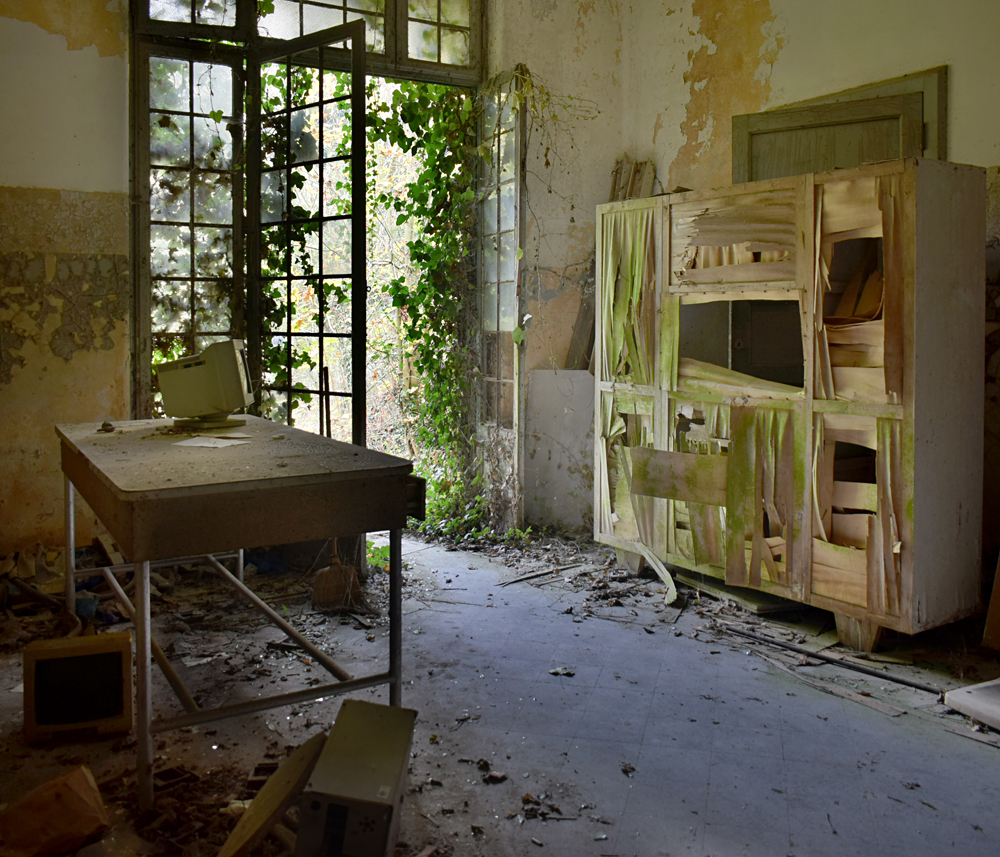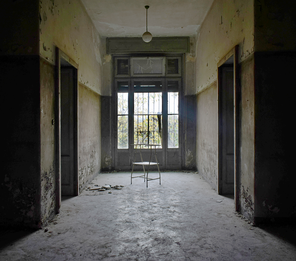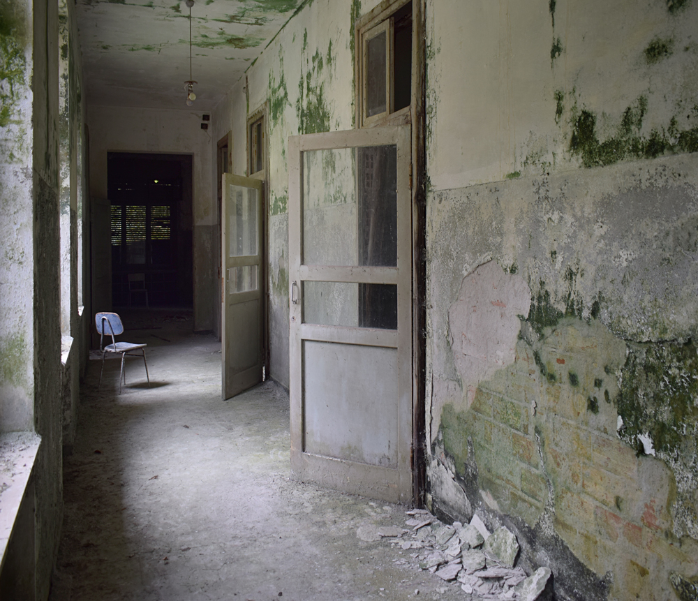 2017. En regardant la vue satellite, je remarque que le lieu est immense. Ayant appris que certains des bâtiments sont encore actifs, je me dis qu’il nous faudra être très discrets pour explorer les bâtiments abandonnés sans se faire voir par d’éventuels personnes travaillant encore sur place. Une fois sur garés à proximité, tout est en fait plus simple que prévu : bien que nous soyons en automne, la végétation est encore très présente, nous rendant presque invisibles en passant d’un bâtiment à un autre. Le fait que le site soit immense et ouvert aux quatre vents (trous dans le grillage un peu partout) est heureux : en cas de fuite, nous n’aurons pas de souci à trouver un point de fuite. Nos pas nous mènent de pavillons en pavillons, certains en très mauvais état dû à un manque d’entretien depuis trop longtemps. Toiture endommagée suite aux intempéries, humidité très présente à cause des nombreuses vitres manquantes… Je suis cependant surpris que ce que nous explorions ne soit pas si dégradé que ça compte tenu de la facilité d’accès. Le fait que le site soit un peu reculé doit évidemment beaucoup jouer, mais tout de même, visiter un lieu de ce type et trouver un seul tag dans un bâtiment comportant plus de 30 chambres, c’est très rare. Ces rares tags ici et là nous indiquent que nous ne sommes pas les premiers à venir, mais à part ça, c’est presque comme si personne ne venait sur place, ou alors très rarement. Autre fait étonnant : les archives. Il y en a encore beaucoup ! Au point que cela prendrait une journée entière pour savoir jusqu’à quand elles remontent. Cartons, dossiers, documents divers : tout est encore là, rassemblé dans des pièces très facilement accessibles. Consulter ces archives et découvrir les barreaux fixés aux barreaux aux balcons du premier étage est une expérience particulière. Je m’imagine les patients internés ici, les barreaux les empêchant de sauter : un peu glaçant. |