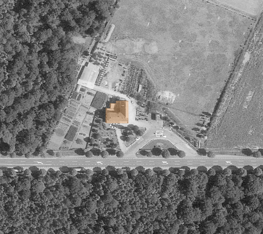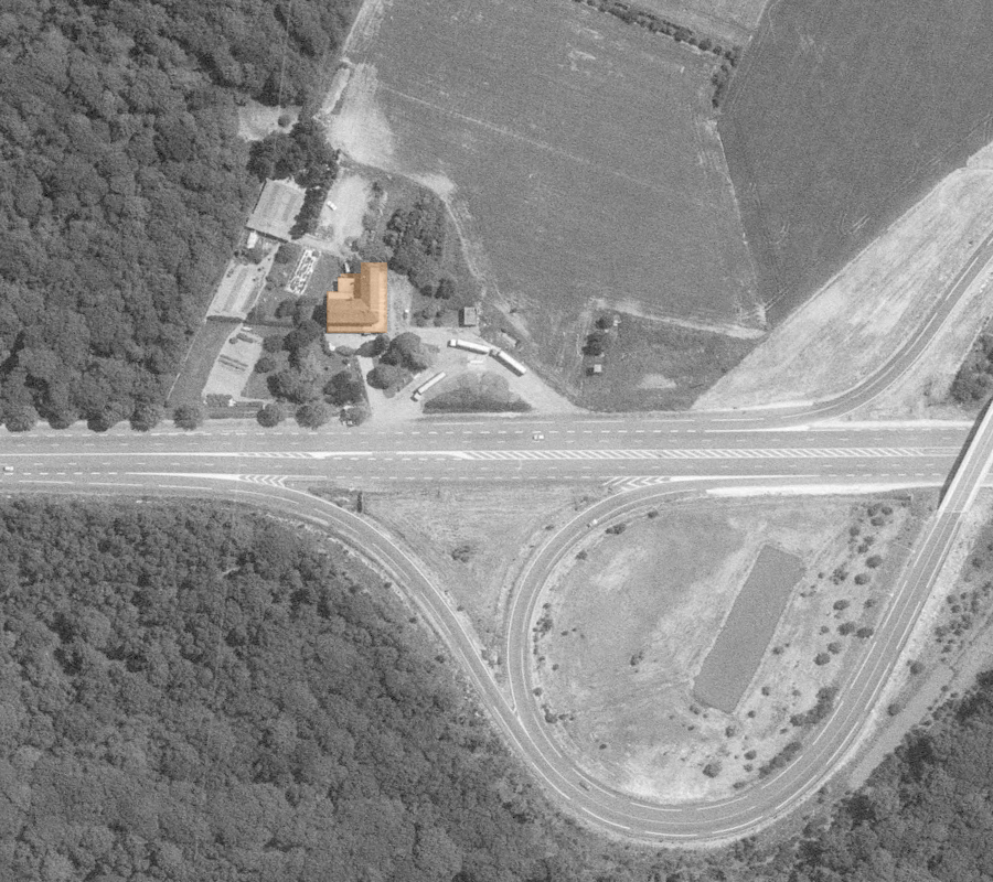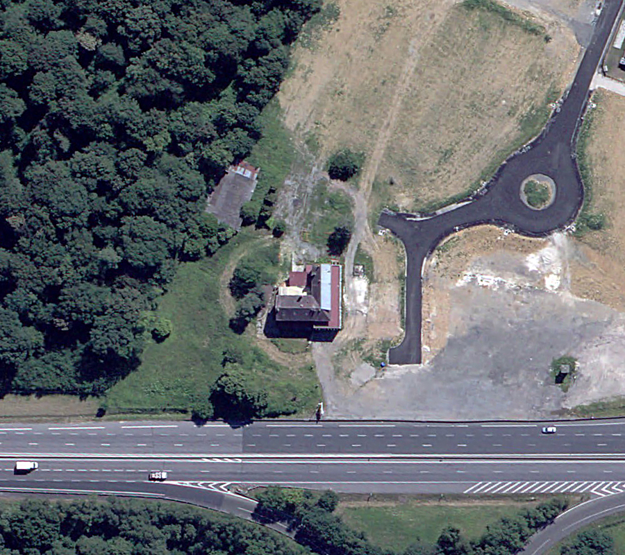 En consultant des vues aériennes on voit que le bâtiment fut construit à la fin des années 60. D’après une petite recherche Google le lieu ferma ses portes en 2009. Les vues Street View, montrent qu’il est toujours en vente à l’heure actuelle (2025), attendant de revivre. Ci-dessous des vues allant de 1969 à 2020. |