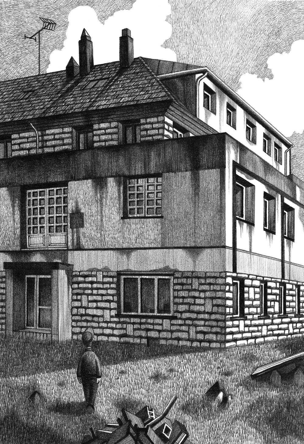 Ci-dessous le dessin réalisé pour le livre «Urbex Europe» dans lequel figure ce lieu : |