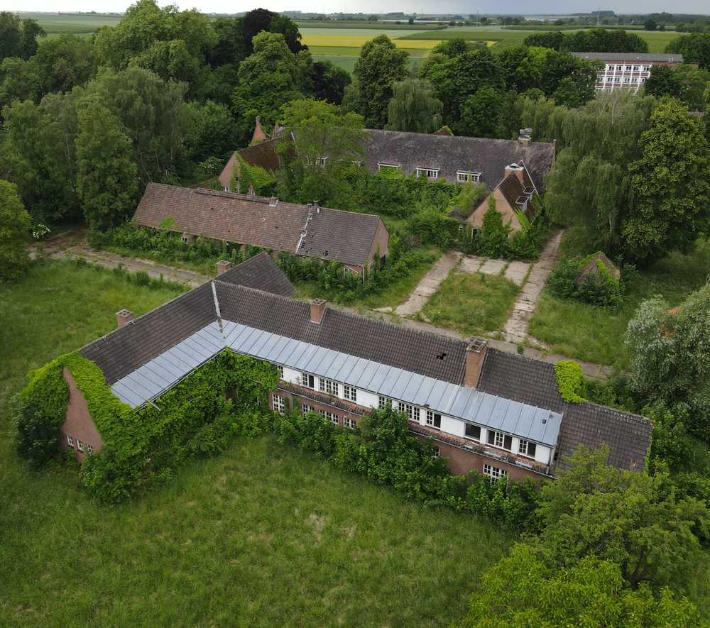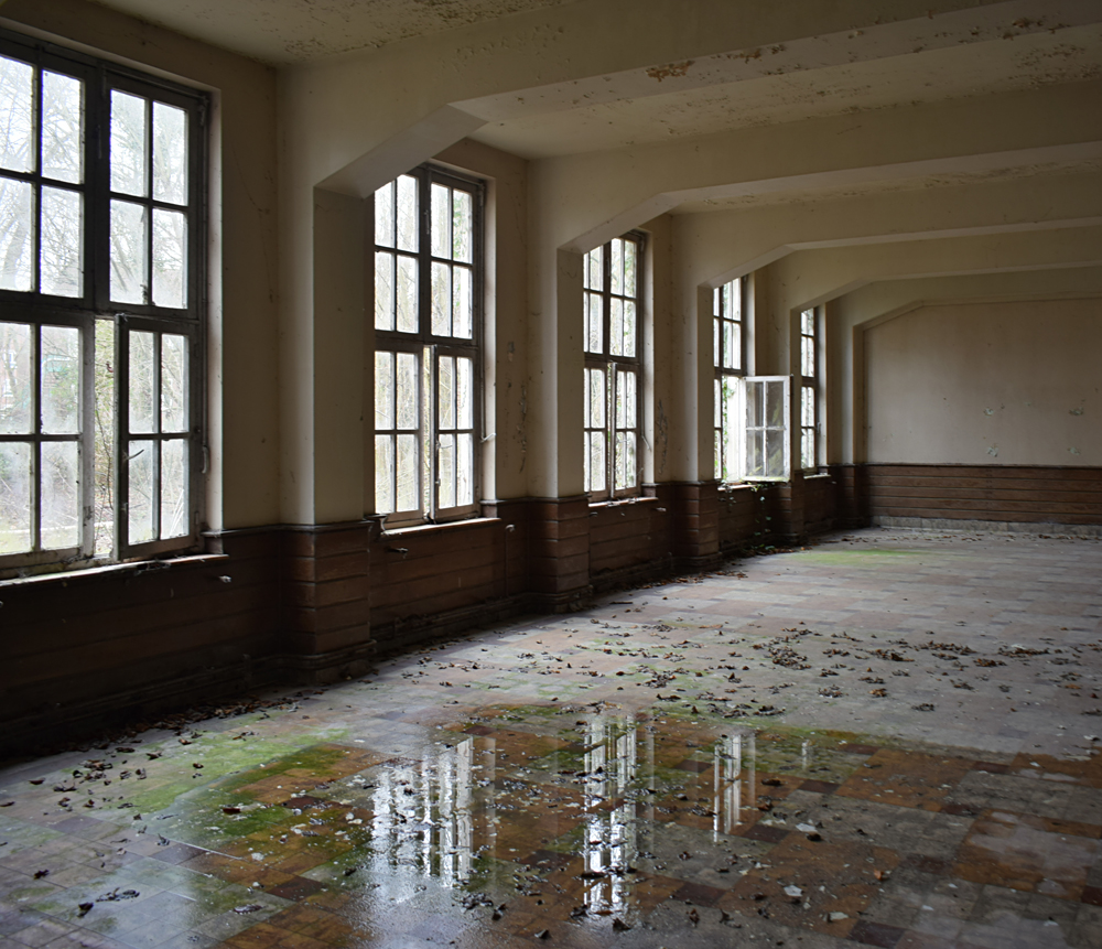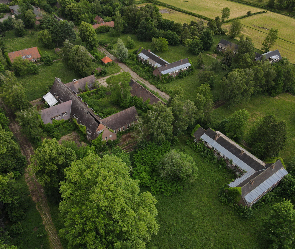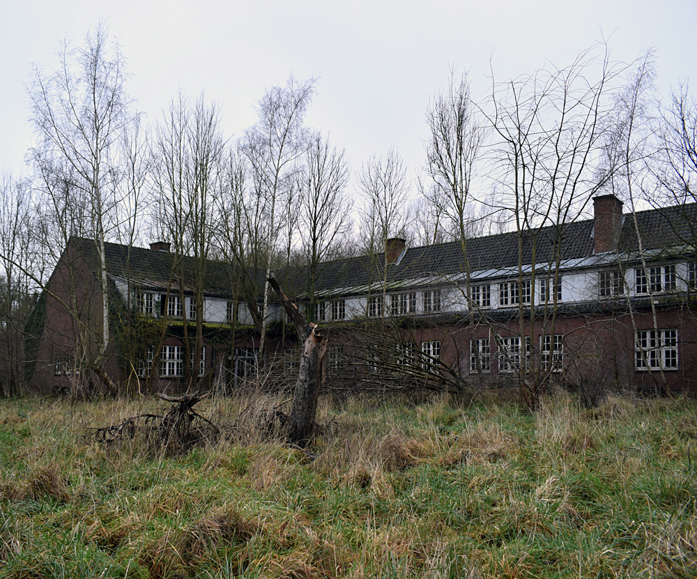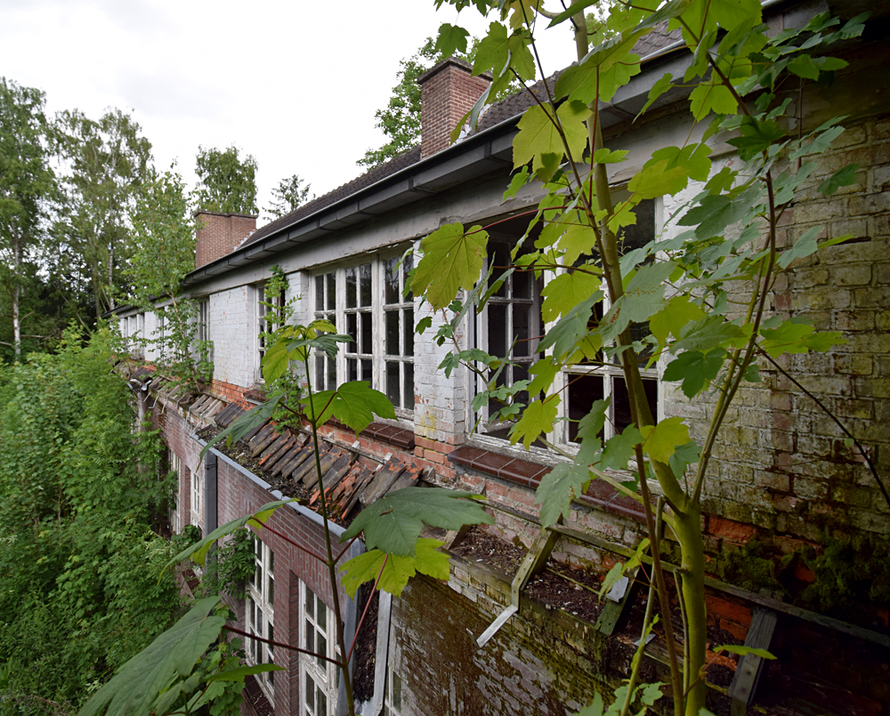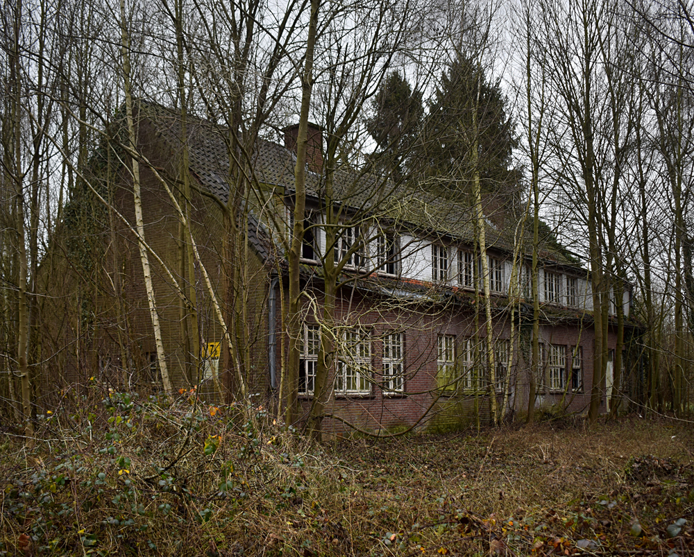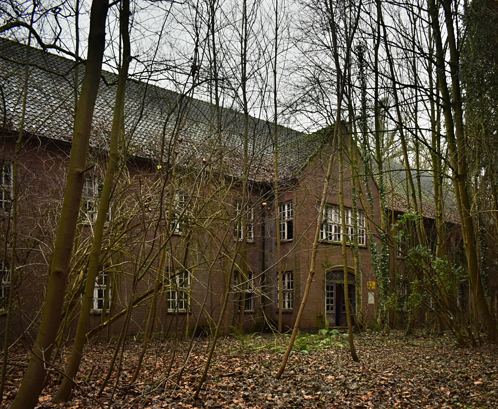 Voici un lieu que j’ai visité deux fois : une première fois en 2018, et une deuxième fois en 2025. La première visite fut publiée dans le livre «Urbex Europe» (2019) sous le nom de «Onverwachte School» (Ecole Inattendue). L’intérêt de cette exploration, plus que le lieu en lui-même, fut que je découvris cette école militaire - car il s’agit d’une école militaire - complètement par hasard ! Venu à la base pour visiter un sublime manoir, je découvre que celui-ci a brûlé. Pas de chance ! M’apprêtant à tourner les talons pour revenir à la voiture, j’aperçois au loin un bâtiment en briques rouges qui avait échappé à mon attention. Bon, ça doit sûrement être une petite dépendance sans intérêt... Mais au loin, à travers les branches des arbres, je crois distinguer un autre bâtiment ? Consultant Google Maps, je réalise que j’avais placé le point gps du manoir sans regarder ce qu’il y avait autour, pensant qu’il y avait juste une simple forêt et rien d ’autre. Erreur : en zoomant un peu je découvre, au nord, un bâtiment, puis deux, trois, quatre et ainsi de suite jusqu’à découvrir une toute nouvelle zone, visiblement à l’abandon ! Ces bâtiments sont-ils liés au manoir ? Pas moyen de le savoir. En tout cas un chemin part de celui-ci, contourne le lac, et file droit vers eux. Très probablement la même parcelle ? Je réalise que, venu pour documenter le manoir, ce sera finalement cette zone inattendue que j’explorerais. |