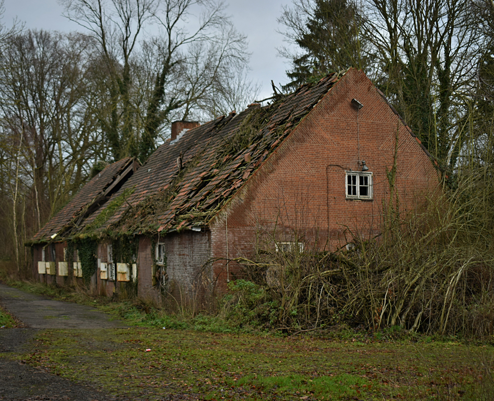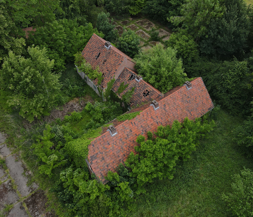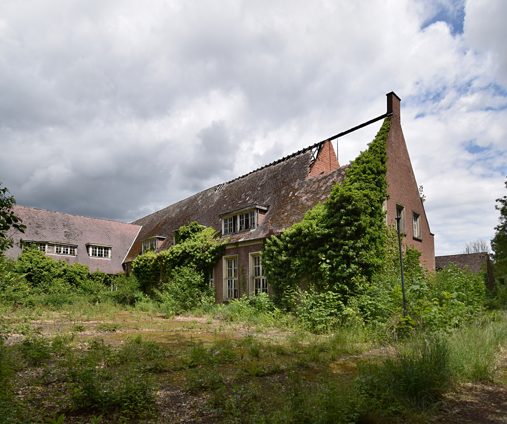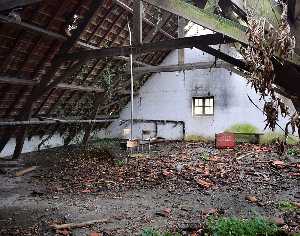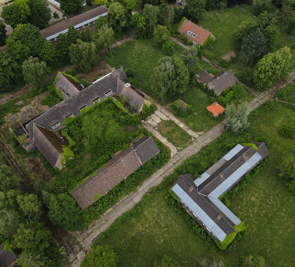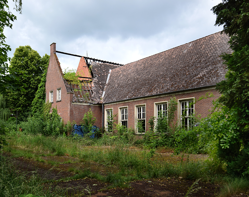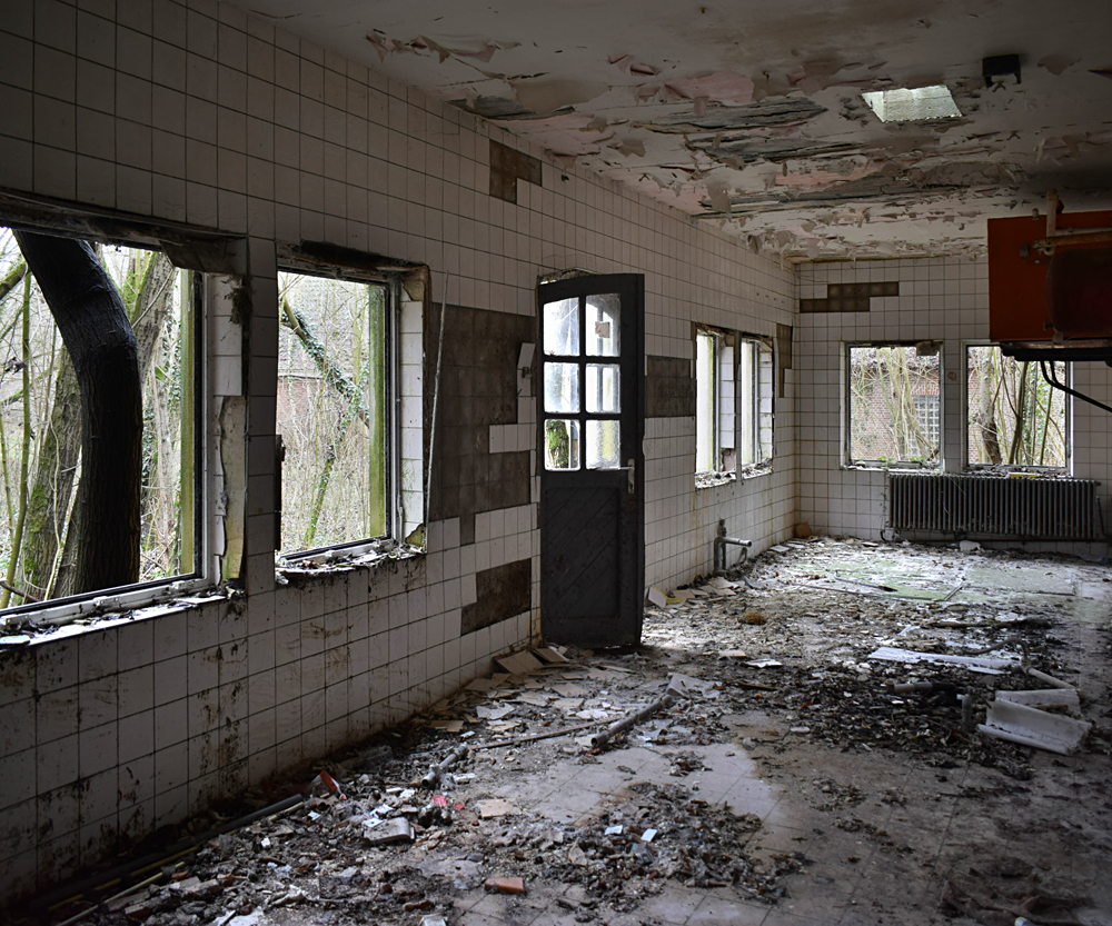 Voici un lieu que j’ai visité deux fois : une première fois en 2018, et une deuxième fois en 2025. La première visite fut publiée dans le livre «Urbex Europe» (2019) sous le nom de «Onverwachte School» (Ecole Inattendue). L’intérêt de cette exploration, plus que le lieu en lui-même, fut que je découvris cette école militaire - car il s’agit d’une école militaire - complètement par hasard ! Venu à la base pour visiter un sublime manoir, je découvre que celui-ci a brûlé. Pas de chance ! M’apprêtant à tourner les talons pour revenir à la voiture, j’aperçois au loin un bâtiment en briques rouges qui avait échappé à mon attention. Bon, ça doit sûrement être une petite dépendance sans intérêt... Mais au loin, à travers les branches des arbres, je crois distinguer un autre bâtiment ? Consultant Google Maps, je réalise que j’avais placé le point gps du manoir sans regarder ce qu’il y avait autour, pensant qu’il y avait juste une simple forêt et rien d ’autre. Erreur : en zoomant un peu je découvre, au nord, un bâtiment, puis deux, trois, quatre et ainsi de suite jusqu’à découvrir une toute nouvelle zone, visiblement à l’abandon ! Ces bâtiments sont-ils liés au manoir ? Pas moyen de le savoir. En tout cas un chemin part de celui-ci, contourne le lac, et file droit vers eux. Très probablement la même parcelle ? Je réalise que, venu pour documenter le manoir, ce sera finalement cette zone inattendue que j’explorerais. |