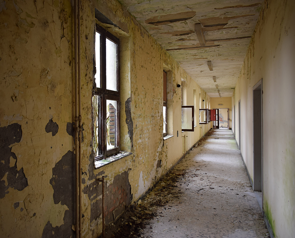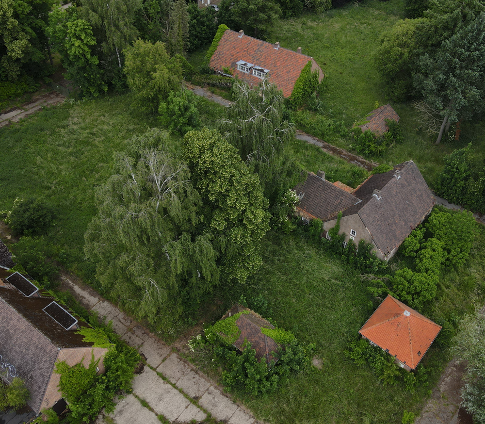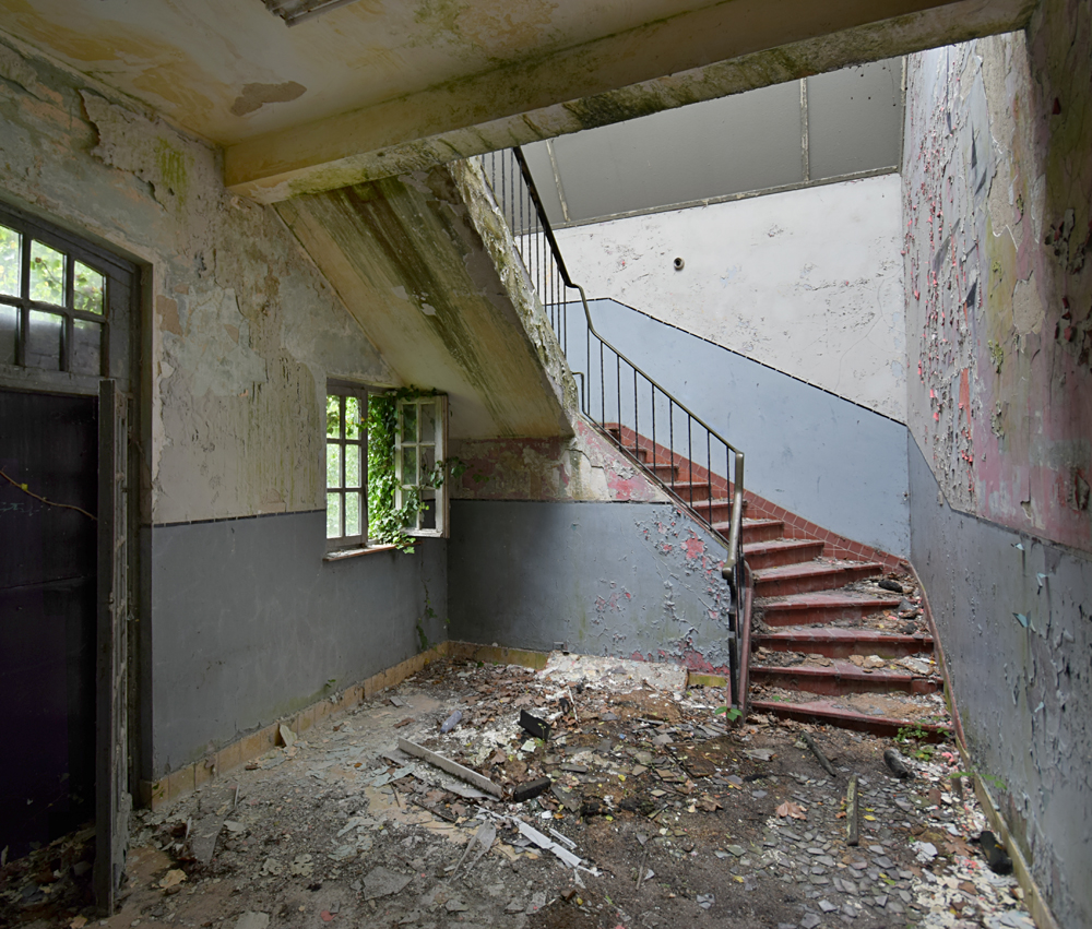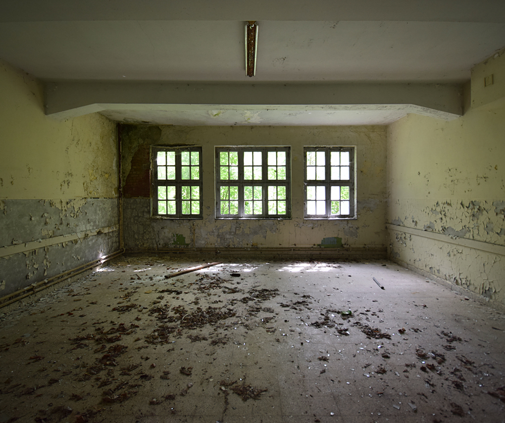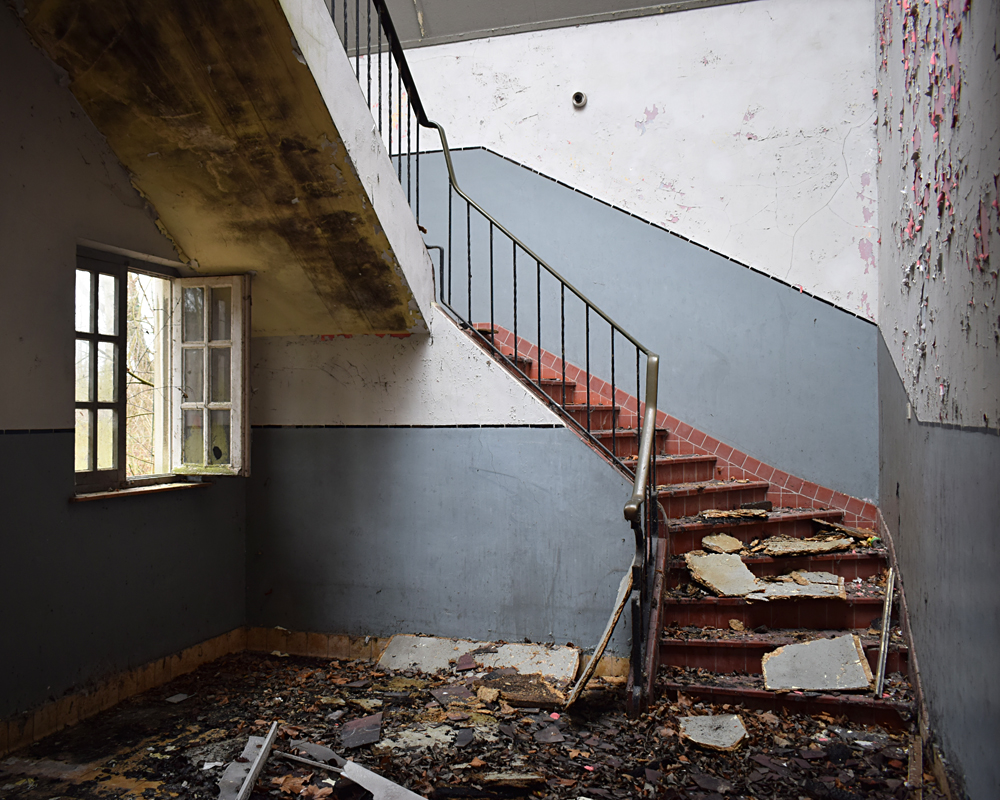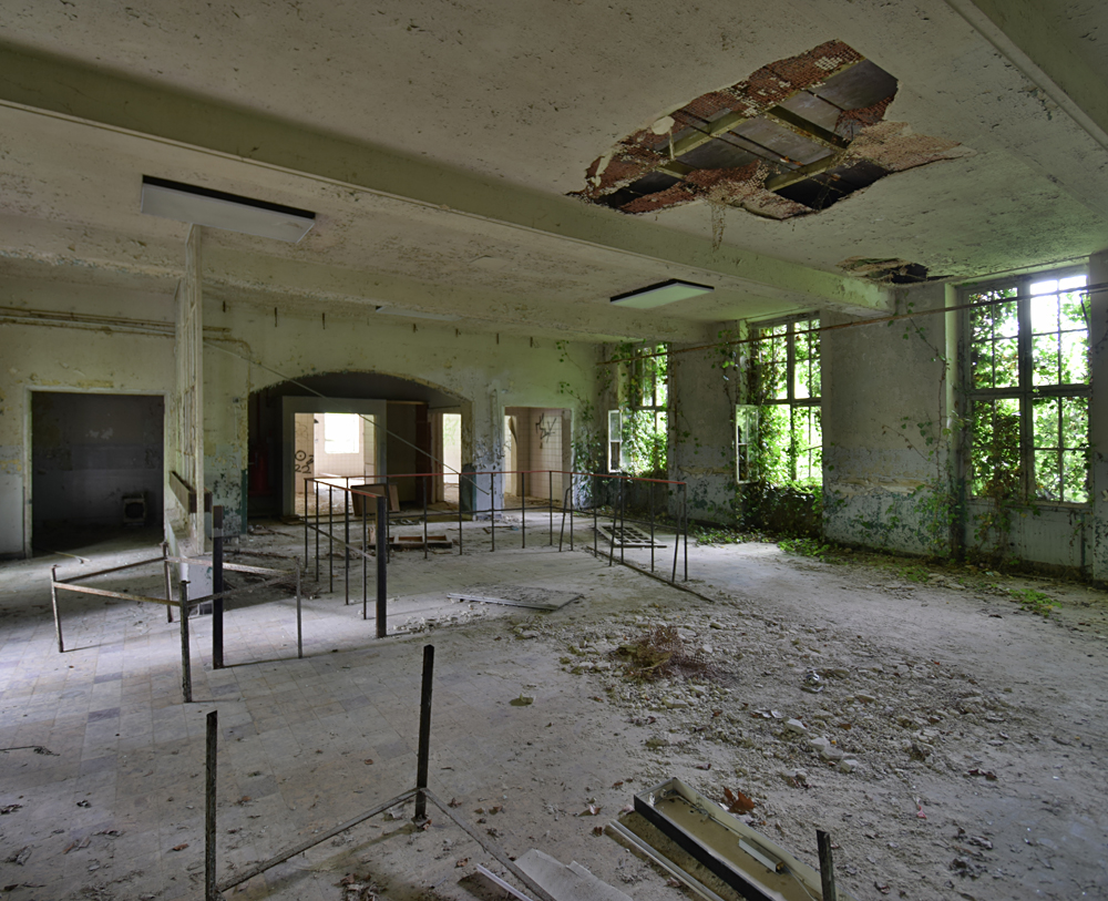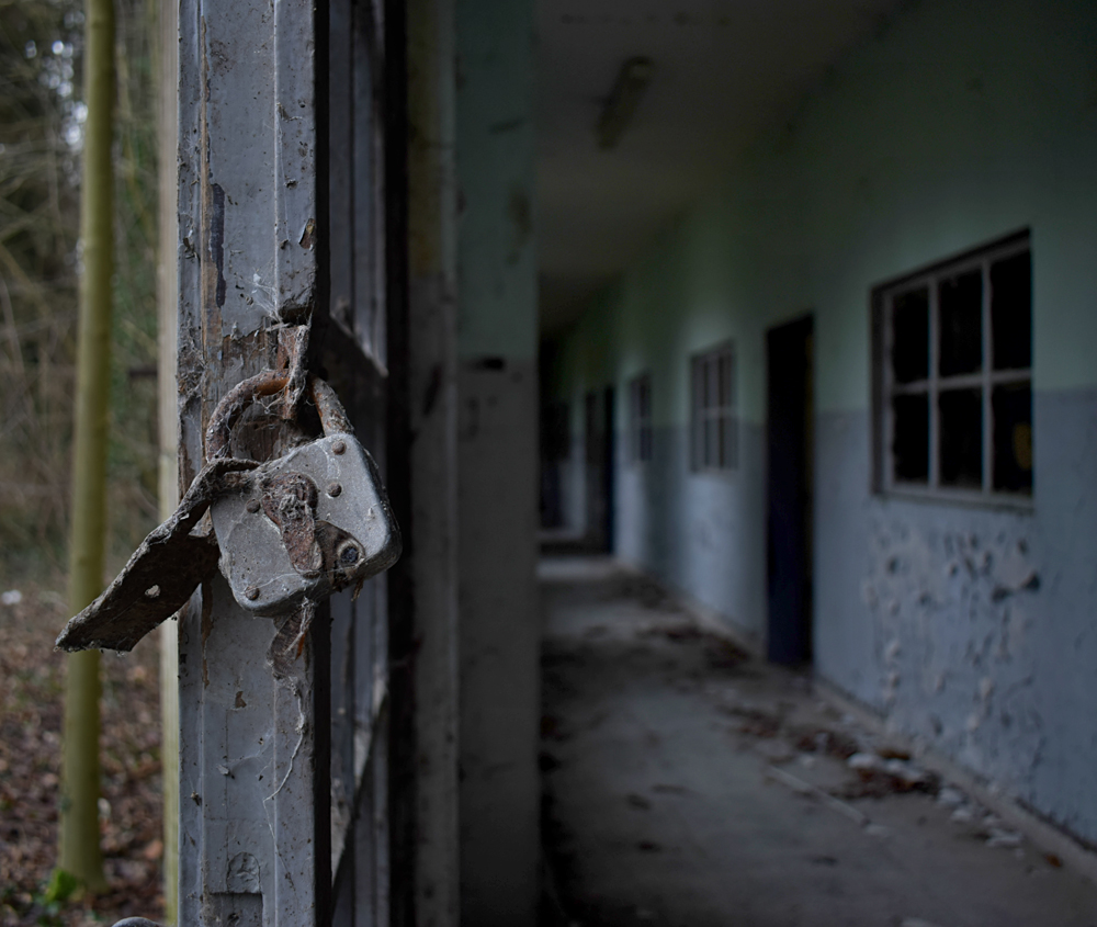 Voici un lieu que j’ai visité deux fois : une première fois en 2018, et une deuxième fois en 2025. La première visite fut publiée dans le livre «Urbex Europe» (2019) sous le nom de «Onverwachte School» (Ecole Inattendue). L’intérêt de cette exploration, plus que le lieu en lui-même, fut que je découvris cette école militaire - car il s’agit d’une école militaire - complètement par hasard ! Venu à la base pour visiter un sublime manoir, je découvre que celui-ci a brûlé. Pas de chance ! M’apprêtant à tourner les talons pour revenir à la voiture, j’aperçois au loin un bâtiment en briques rouges qui avait échappé à mon attention. Bon, ça doit sûrement être une petite dépendance sans intérêt... Mais au loin, à travers les branches des arbres, je crois distinguer un autre bâtiment ? Consultant Google Maps, je réalise que j’avais placé le point gps du manoir sans regarder ce qu’il y avait autour, pensant qu’il y avait juste une simple forêt et rien d ’autre. Erreur : en zoomant un peu je découvre, au nord, un bâtiment, puis deux, trois, quatre et ainsi de suite jusqu’à découvrir une toute nouvelle zone, visiblement à l’abandon ! Ces bâtiments sont-ils liés au manoir ? Pas moyen de le savoir. En tout cas un chemin part de celui-ci, contourne le lac, et file droit vers eux. Très probablement la même parcelle ? Je réalise que, venu pour documenter le manoir, ce sera finalement cette zone inattendue que j’explorerais. |