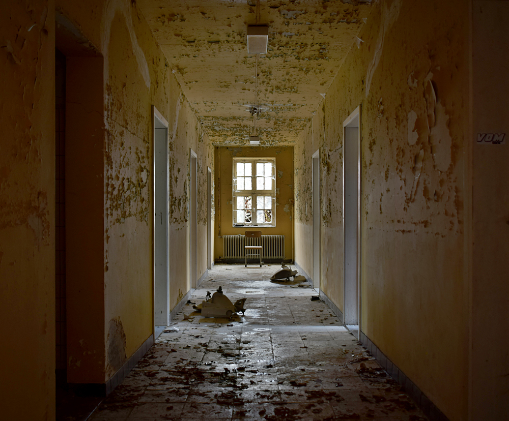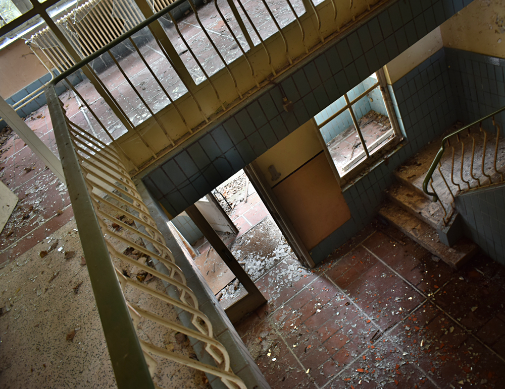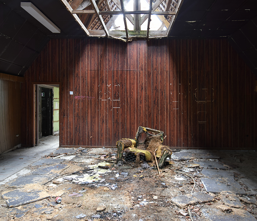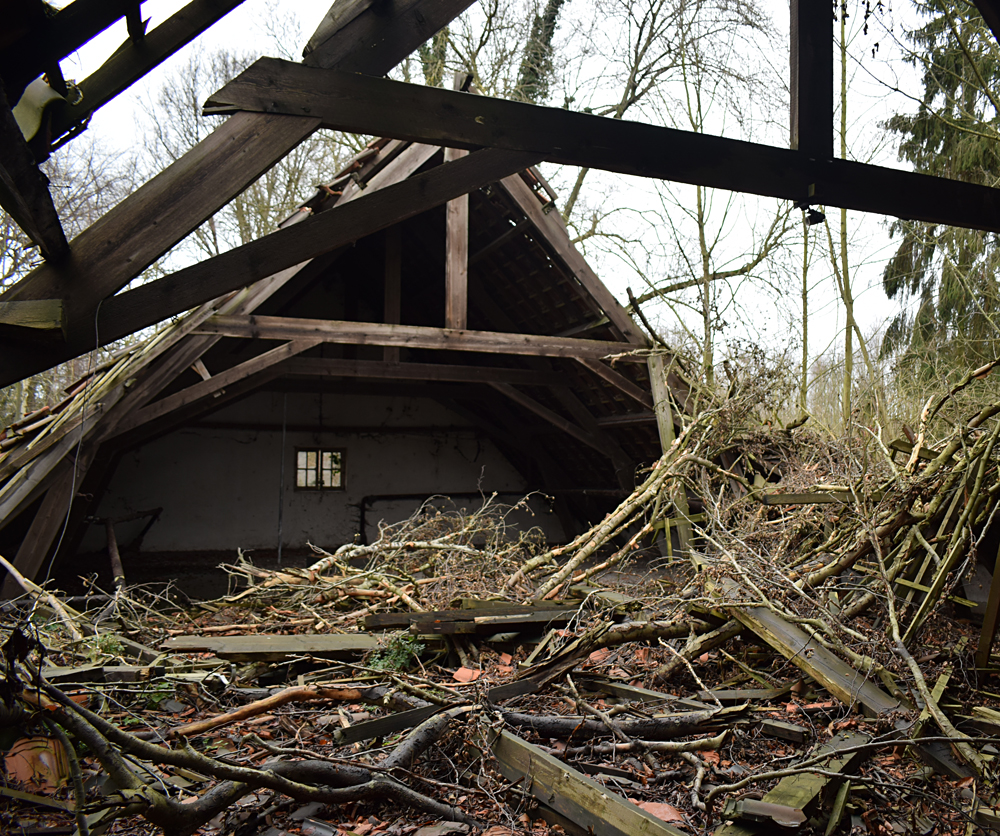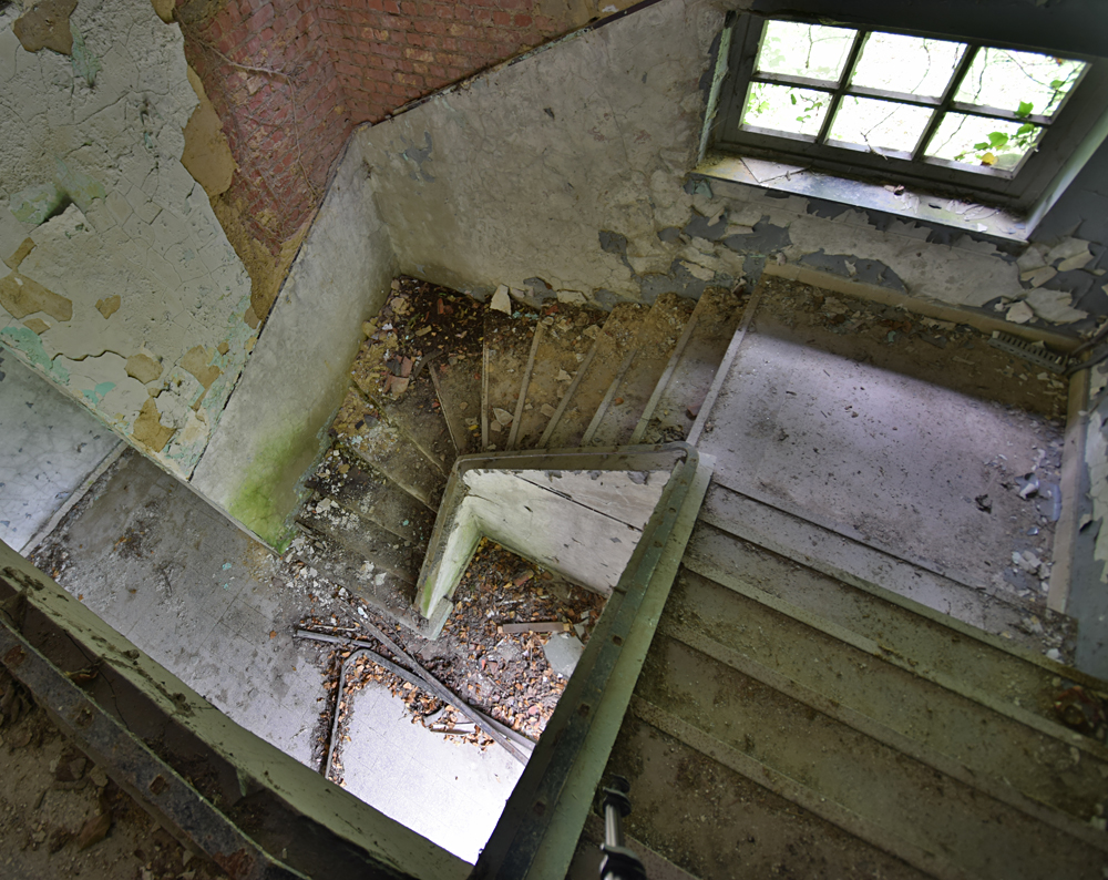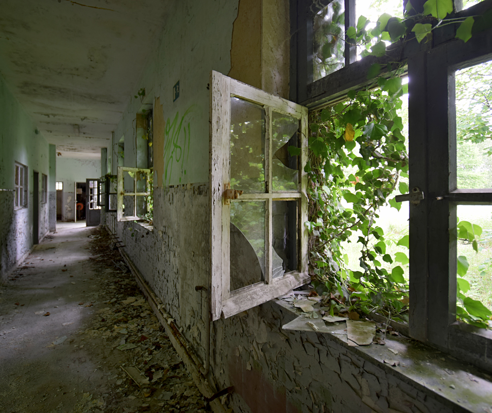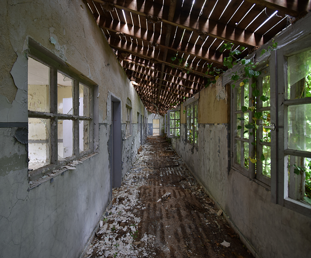 Voici un lieu que j’ai visité deux fois : une première fois en 2018, et une deuxième fois en 2025. La première visite fut publiée dans le livre «Urbex Europe» (2019) sous le nom de «Onverwachte School» (Ecole Inattendue). L’intérêt de cette exploration, plus que le lieu en lui-même, fut que je découvris cette école militaire - car il s’agit d’une école militaire - complètement par hasard ! Venu à la base pour visiter un sublime manoir, je découvre que celui-ci a brûlé. Pas de chance ! M’apprêtant à tourner les talons pour revenir à la voiture, j’aperçois au loin un bâtiment en briques rouges qui avait échappé à mon attention. Bon, ça doit sûrement être une petite dépendance sans intérêt... Mais au loin, à travers les branches des arbres, je crois distinguer un autre bâtiment ? Consultant Google Maps, je réalise que j’avais placé le point gps du manoir sans regarder ce qu’il y avait autour, pensant qu’il y avait juste une simple forêt et rien d ’autre. Erreur : en zoomant un peu je découvre, au nord, un bâtiment, puis deux, trois, quatre et ainsi de suite jusqu’à découvrir une toute nouvelle zone, visiblement à l’abandon ! Ces bâtiments sont-ils liés au manoir ? Pas moyen de le savoir. En tout cas un chemin part de celui-ci, contourne le lac, et file droit vers eux. Très probablement la même parcelle ? Je réalise que, venu pour documenter le manoir, ce sera finalement cette zone inattendue que j’explorerais. |