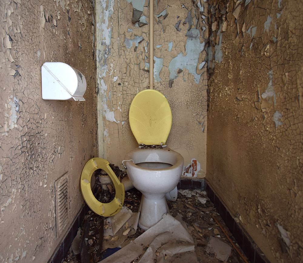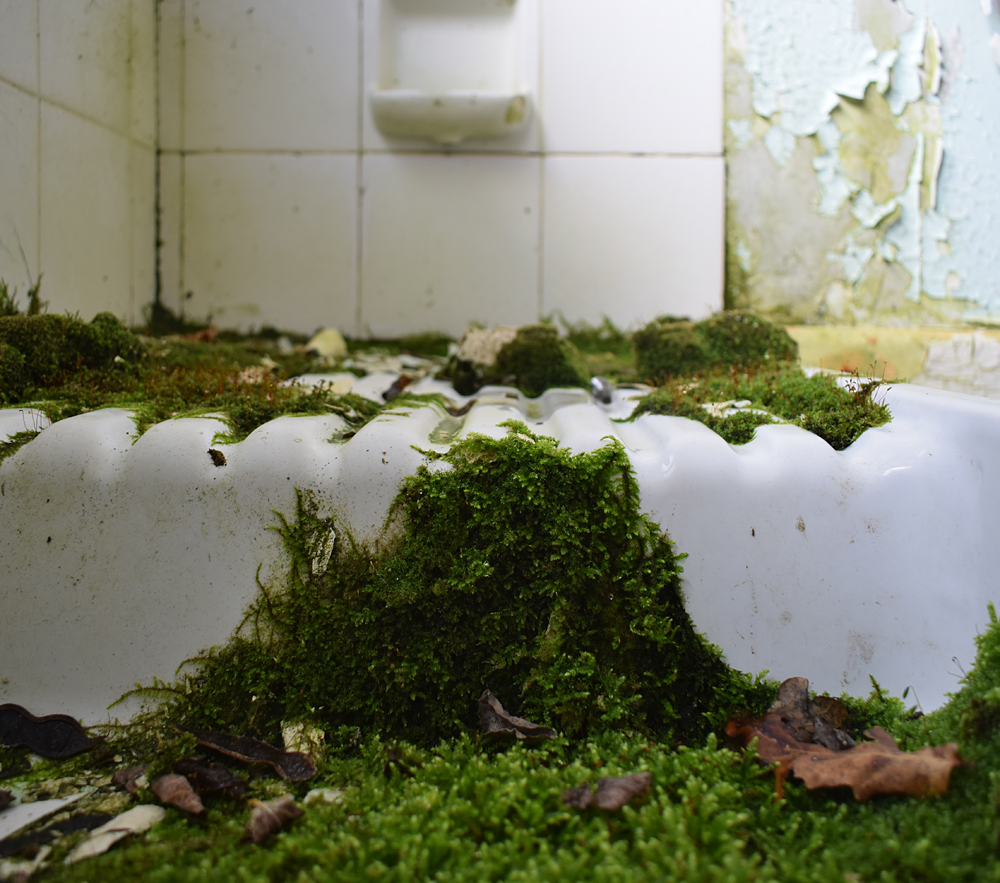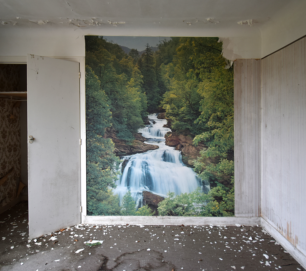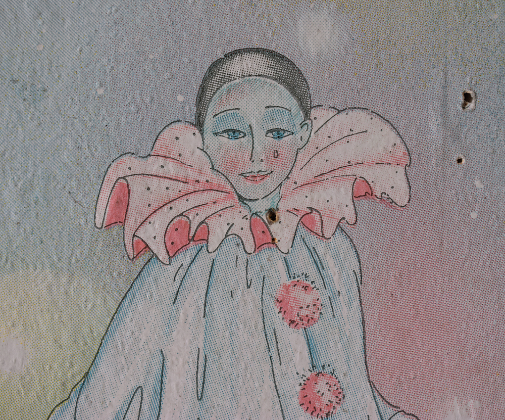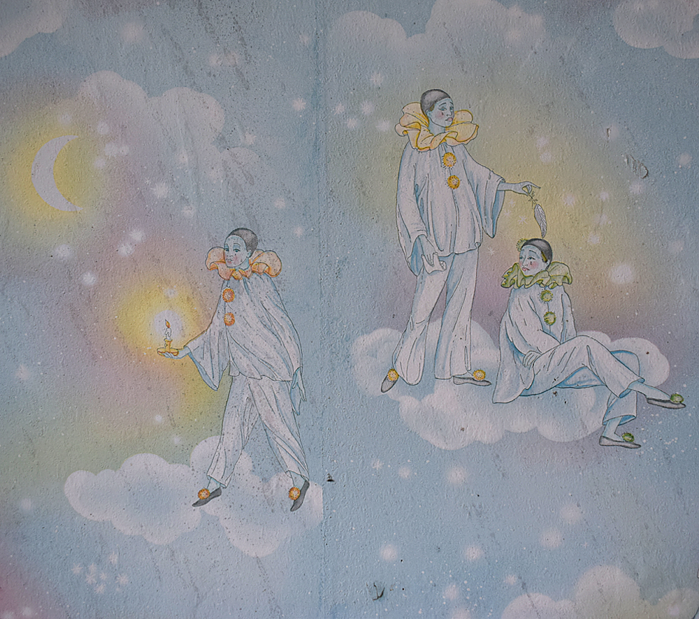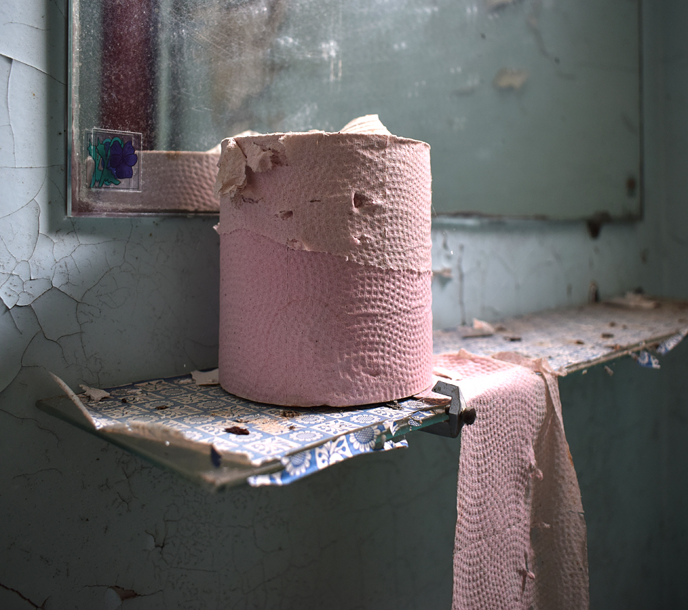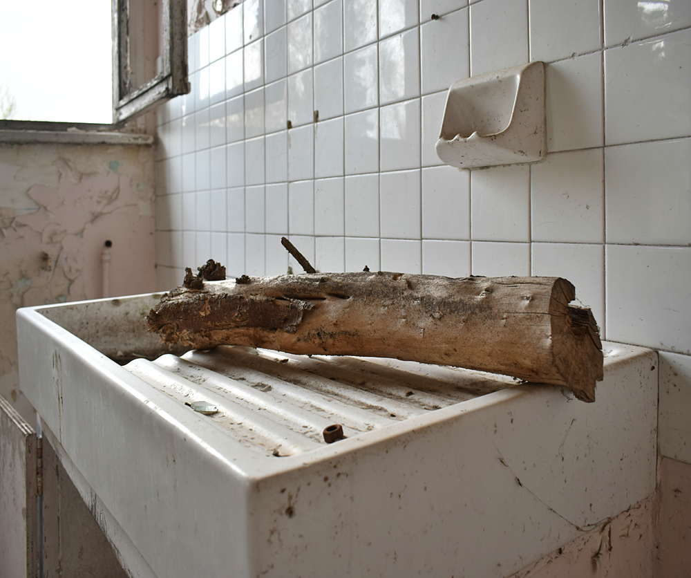 Là encore, la visite n’est pas si exceptionnelle que ça en terme d’architecture, mais c’est vraiment intéressant de découvrir ces ambiances si différentes les unes des autres selon les logements. Les différents papiers peints décrivent des vies différentes : ici, des fleurs, plus loin, des cerfs et des biches, à un endroit une magnifique photo de torrent vraiment sympa, et enfin, dans une chambre d’enfant, des Pierrot ! L’ambiance mélancolique de ce site me donne envie de lui donner le nom de ce personnage quasiment toujours représenté en train de pleurer. Ici, l’analogie est encore plus criante du fait que les trois bâtiments composant la cité n’ont (littéralement) plus de feu : plus de chauffage, et plus de vie. La visite de ce dernier bâtiment se termine comme elle a commencé : en prenant en photos les deux autres bâtiments. Mais d’un peu plus haut cette fois. |