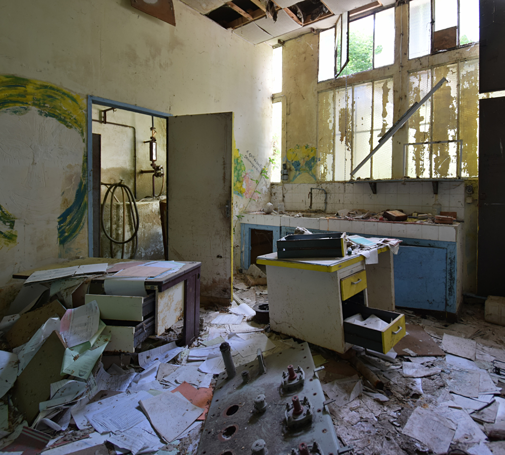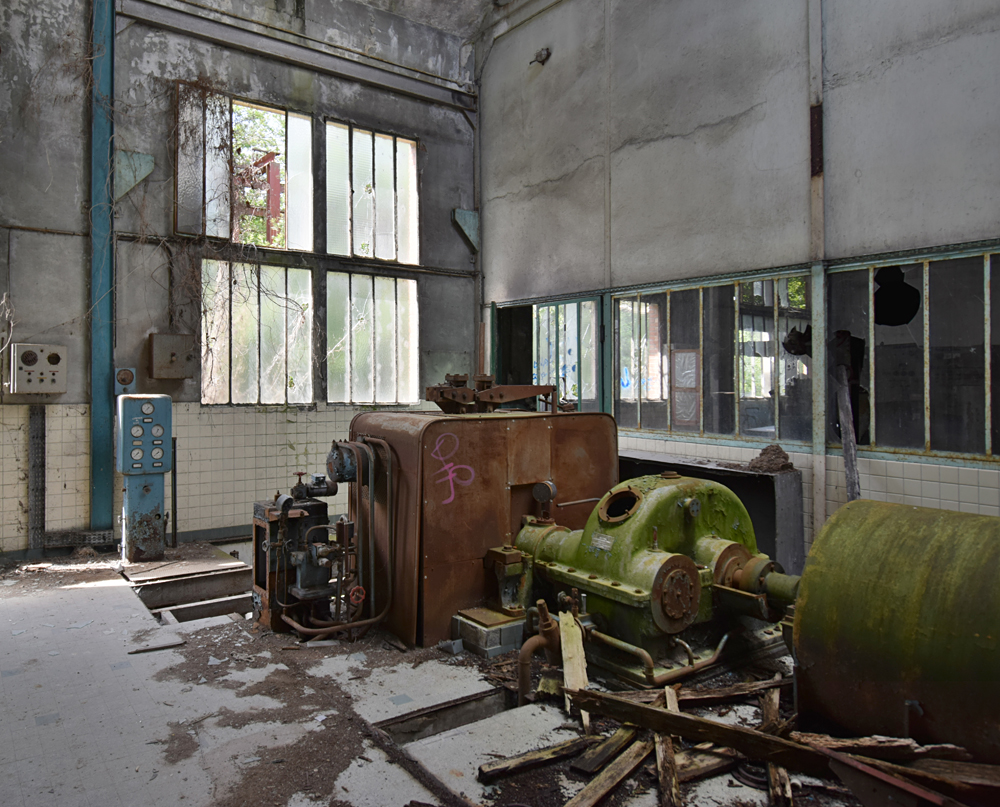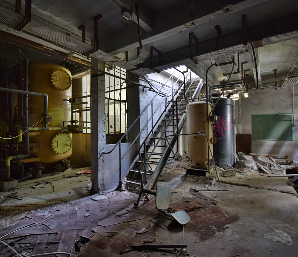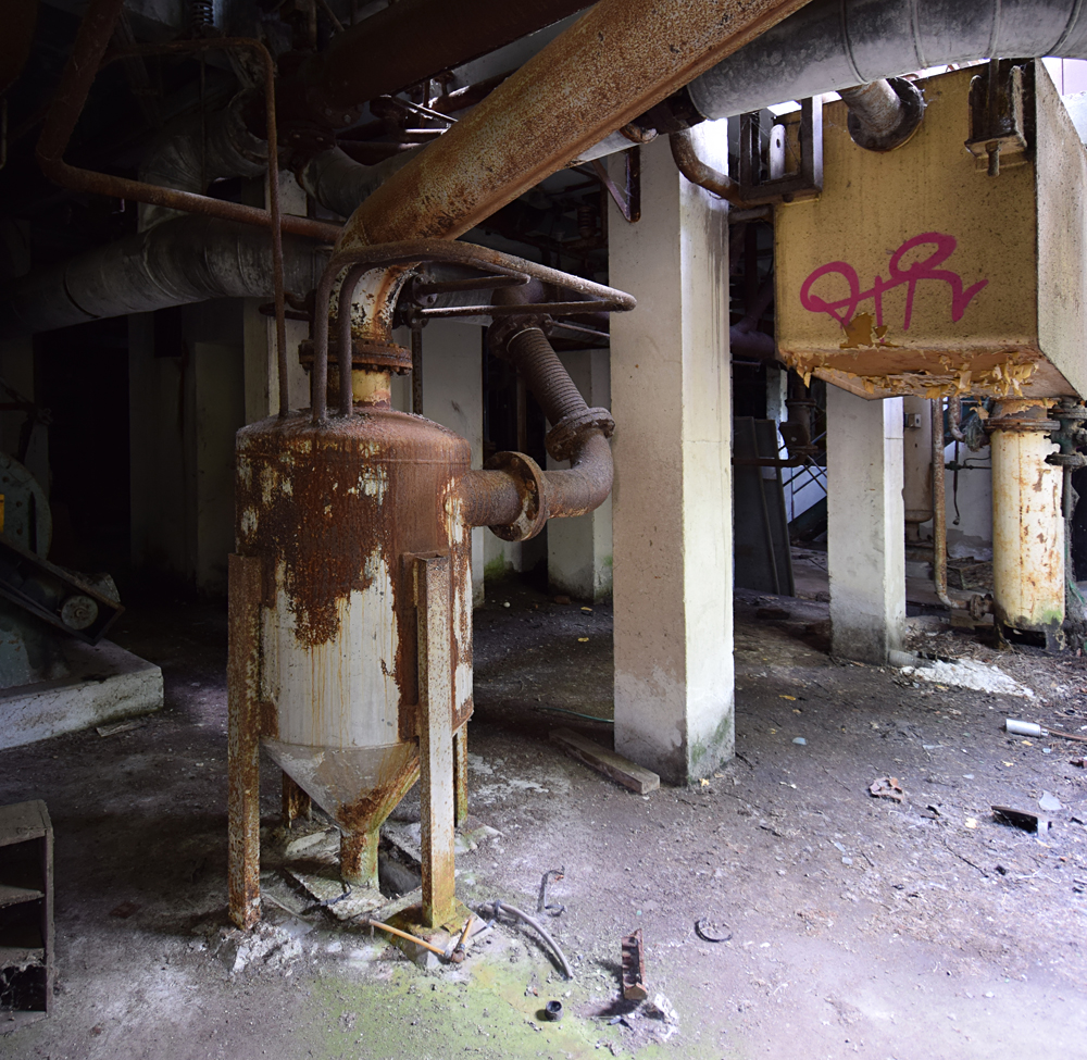 Voici un lieu que j’avais depuis des années sur ma carte, et que je pensais complètement inintéressant après avoir lu ou entendu différents commentaires : la papeterie avait été incendiée, dévastée, dégradée etc. A l’occasion d’un road trip avec des amis, venu au départ juste pour «constater les dégâts» puis nous diriger vers un autre endroit à explorer, j’eux le plaisir de voir, une fois entré, que le site était en fait particulièrement intéressant ! Pour autant, la visite ne fut pas sans un certain stress, car si l’usine est bel et bien «en l’état» abandonnée, elle se trouve sur le site actif d’une entreprise qui stocke divers matériaux autour de la papeterie. Certains éléments sont d’ailleurs stockés dans une partie de l’usine, que nous n’avons pas visité, nous intéressant juste à la zone abandonnée de l’ancienne papeterie. La visite commence par une grande salle technique que je regrette de ne pas avoir plus documenté tant elle est chouette avec ce plafond vouté et tous ces tuyaux. Quelque pas plus loin, je découvre différentes pièces à la fonction inconnue. Au sol, plein de poussière, un calendrier daté de 1998, sûrement la période à laquelle la papeterie ferma ses portes ? Si nous constatons des dégradations ici et là (les bureaux en vrac sont une constante dans l’exploration urbaine) je suis surpris par le peu de tags présents. Et aussi heureux de découvrir différents points de vue plutôt photogéniques. Ci-dessous des photos de ce début de visite : |