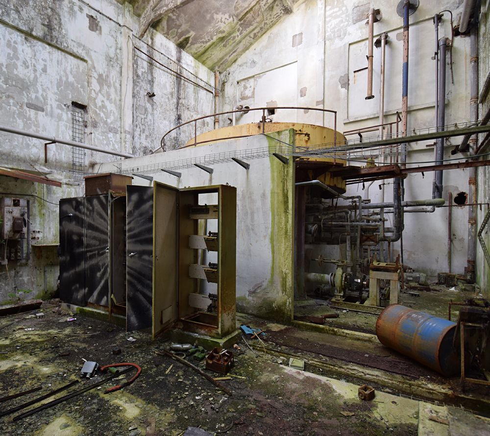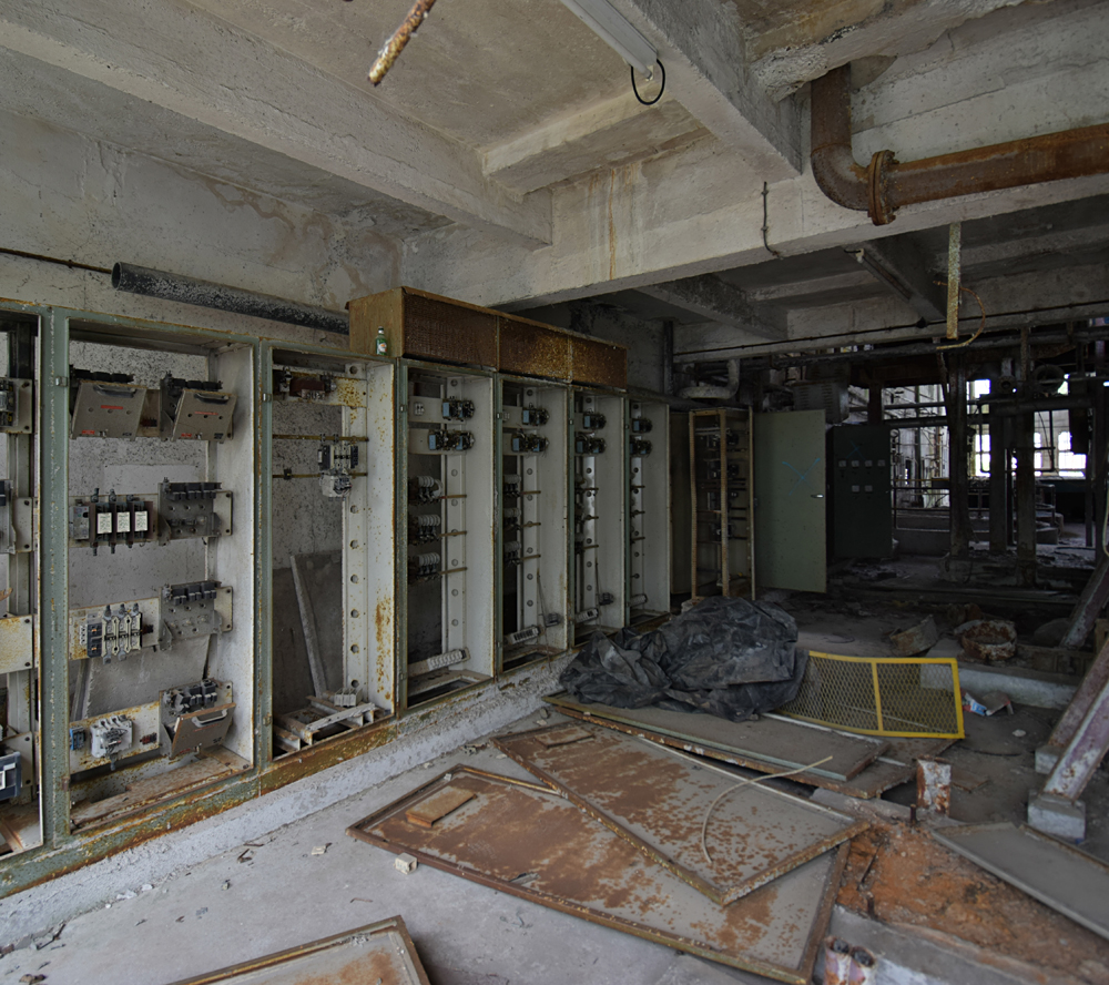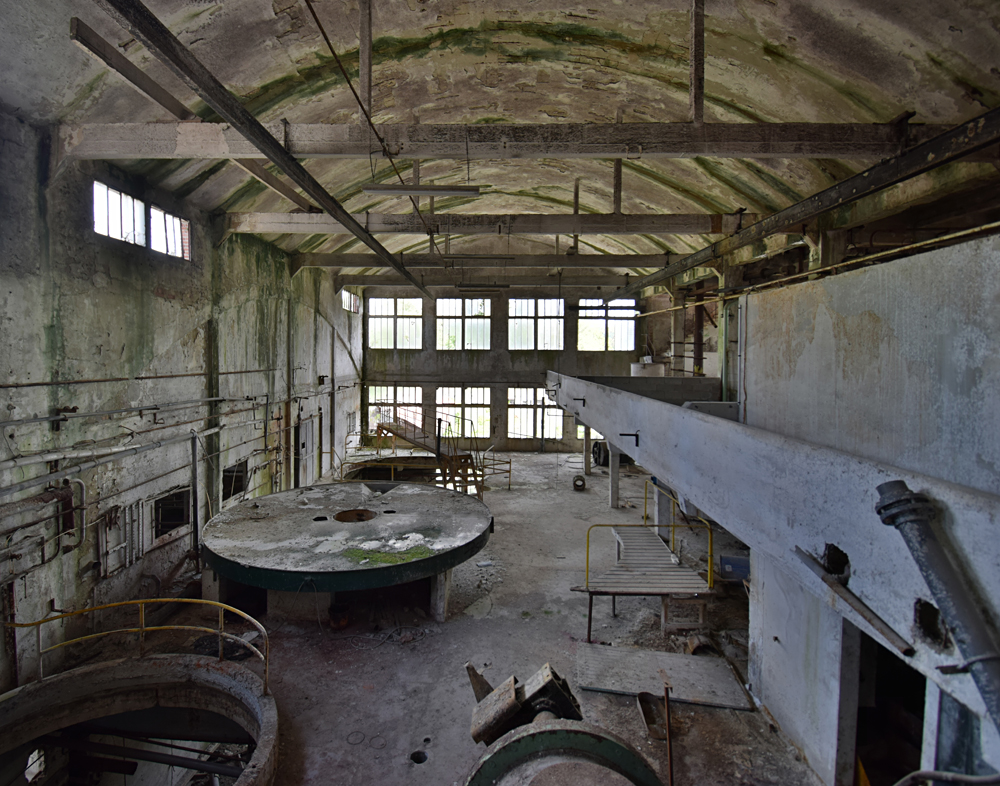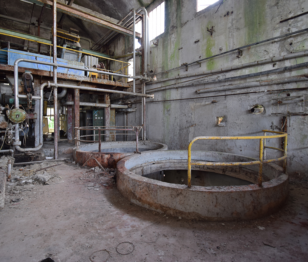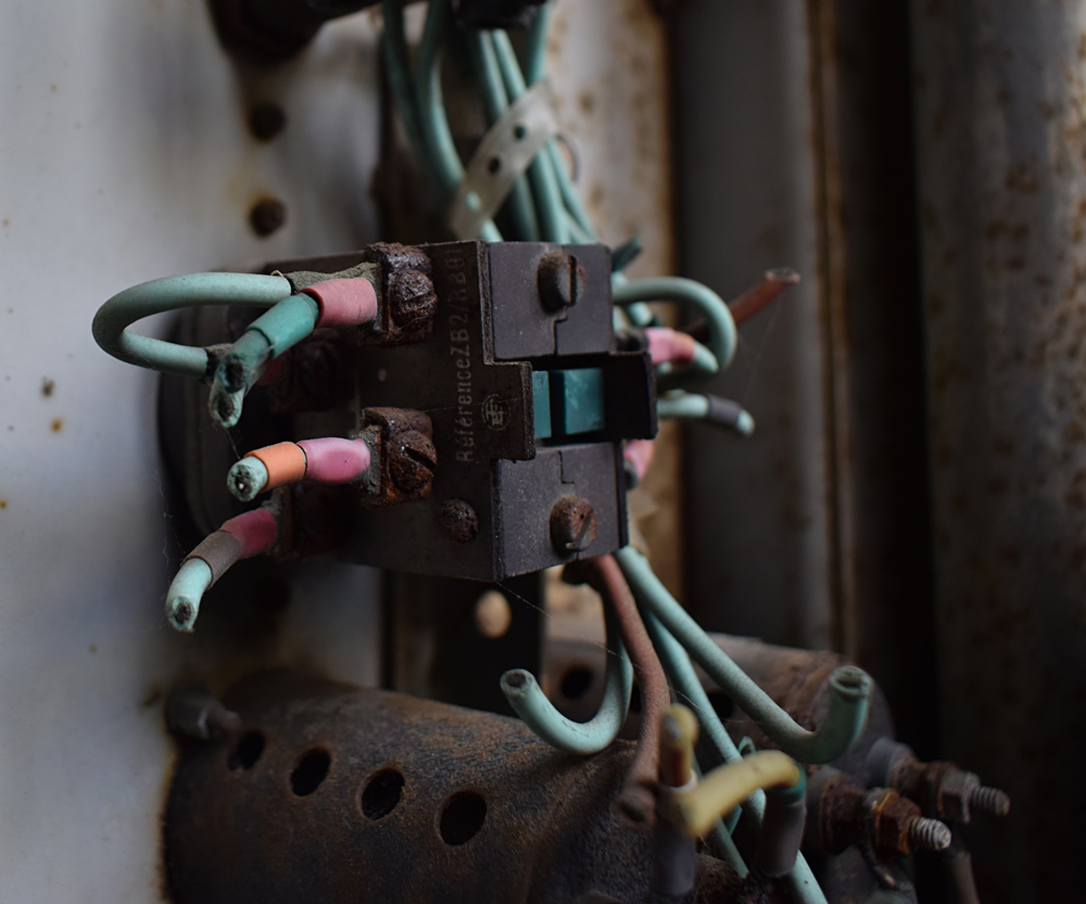 La visite de l’étage est une visite de site industriel comme je les adore, surtout ce jour-là avec ce grand soleil créant des tâches lumineuses à certains endroits. Pour autant, il ne faut pas oublier de rester sur ses gardes : l’intérieur de la papeterie est particulièrement dangereux avec tous ces trous et ces recoins sombres (malgré le grand soleil) qui donnent accès à d’anciennes cuves d’où l’on ne pourrait pas remonter en cas de chute... Plus d’un fois dans cette partie de l’usine j’ai renoncé à prendre certains clichés, l’opération étant trop périlleuse. On a beau se dire que le béton est un matériau solide, c’est tout de même toujours aussi stressant d’évoluer dans un lieu aussi fissuré par endroits, et où chaque rambarde rouillée et n’offre que peu de sécurité. Par endroits une certaine sérénité est tout de même possible, comme dans cette pièce abritant encore différentes armoires électriques où l’on peut lire d’obscures et jolies inscriptions telles que «PULPEUR», «PULPER», «AGI CVI» ou «FIBRES COURTES». |
