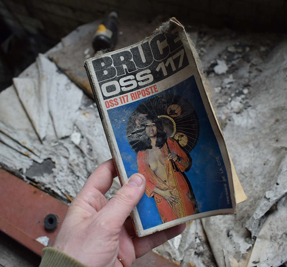 Ci-dessous d’autres choses vues dans la pièce juste à côté. Le livre OSS 117 date de 1973. Que fait-il ici ? J’imagine bien un ouvrier le feuilletant durant sa pause déjeuner. Aujourd’hui, après les trois films humoristiques sortis au cinéma, ce doit être une expérience étrange que de lire un OSS 117 écrit au premier degré… |