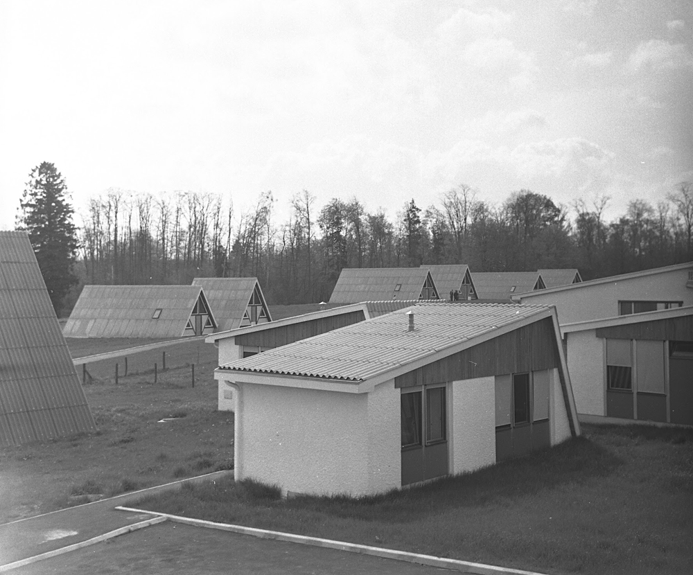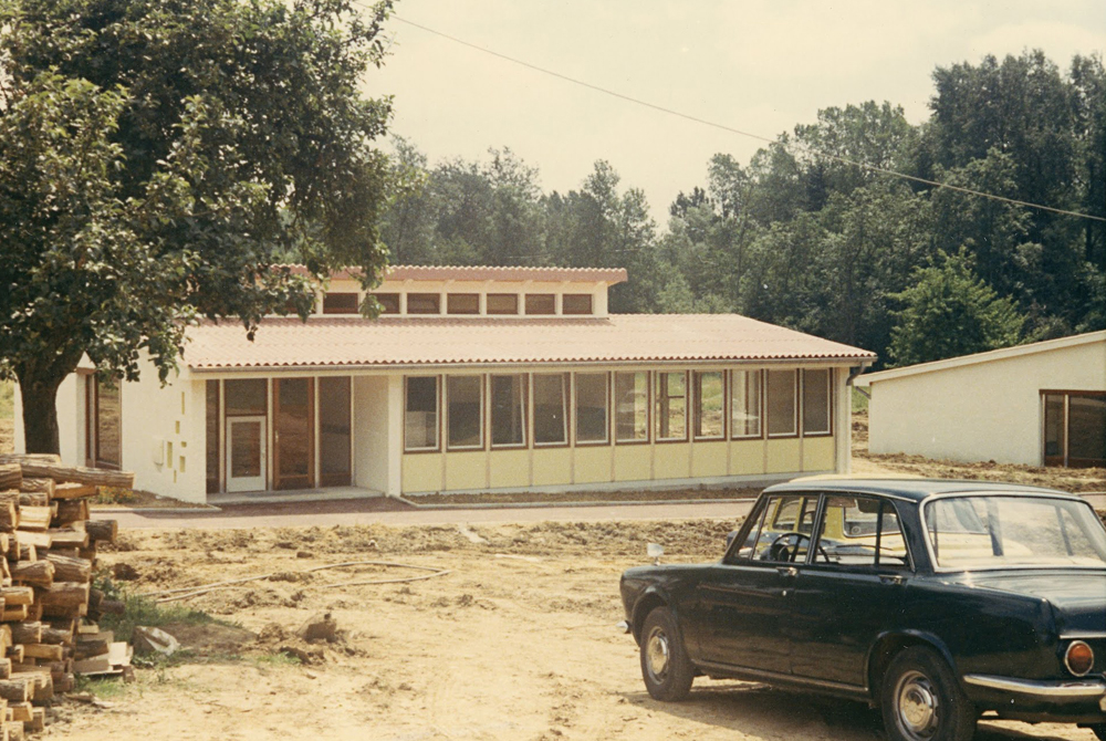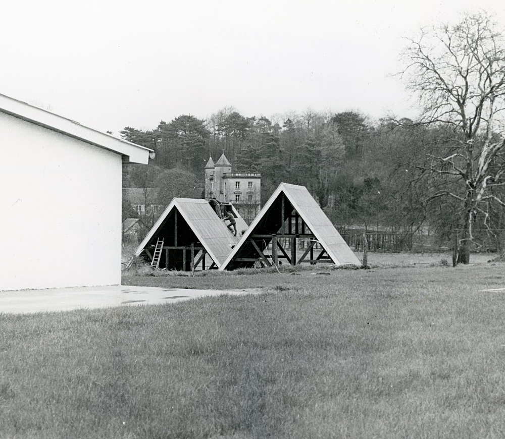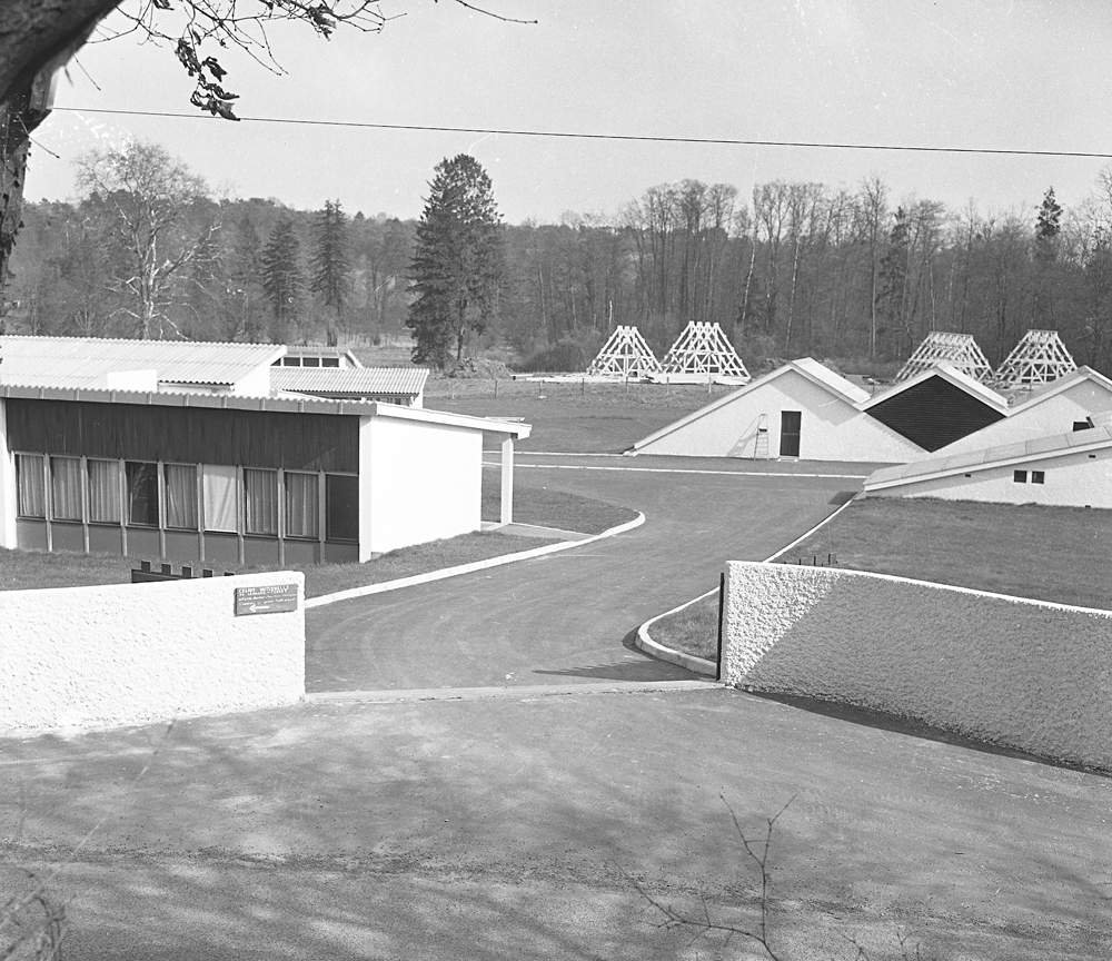 Ci-dessous, petit voyage de 1971 à 1990, période à laquelle le lieu est en activité (pelouse entretenues, voitures visibles etc). |
