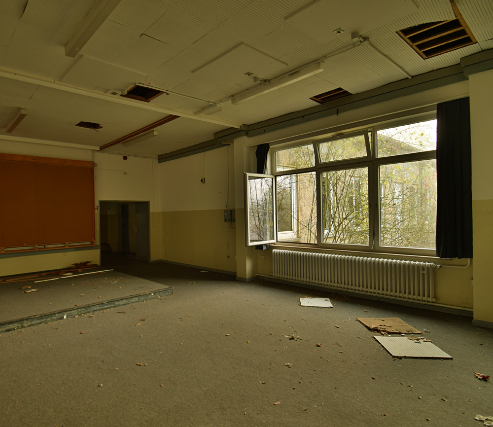 Le premier bâtiment où nous dépêchons d’entrer est une petite école. S’il ne reste plus rien à l’intérieur, le bâtiment nous fournit cependant une bonne cachette le temps de décider où nous irons ensuite : une autre école, bien plus grande celle-là, située non loin de là. Une autre école dont la situation n’est pas claire à 100% : abandonnée ? Utilisée par la Police ? |