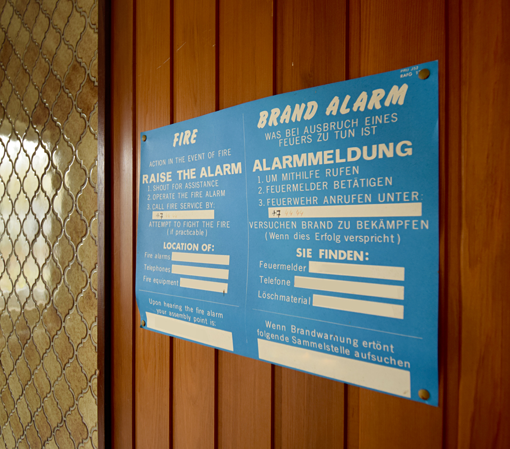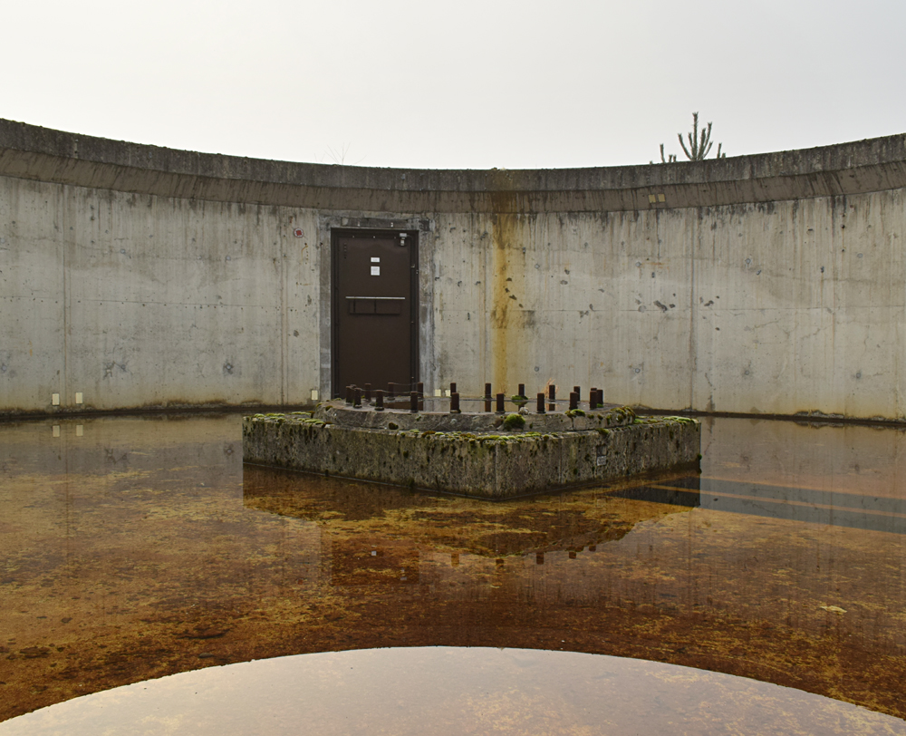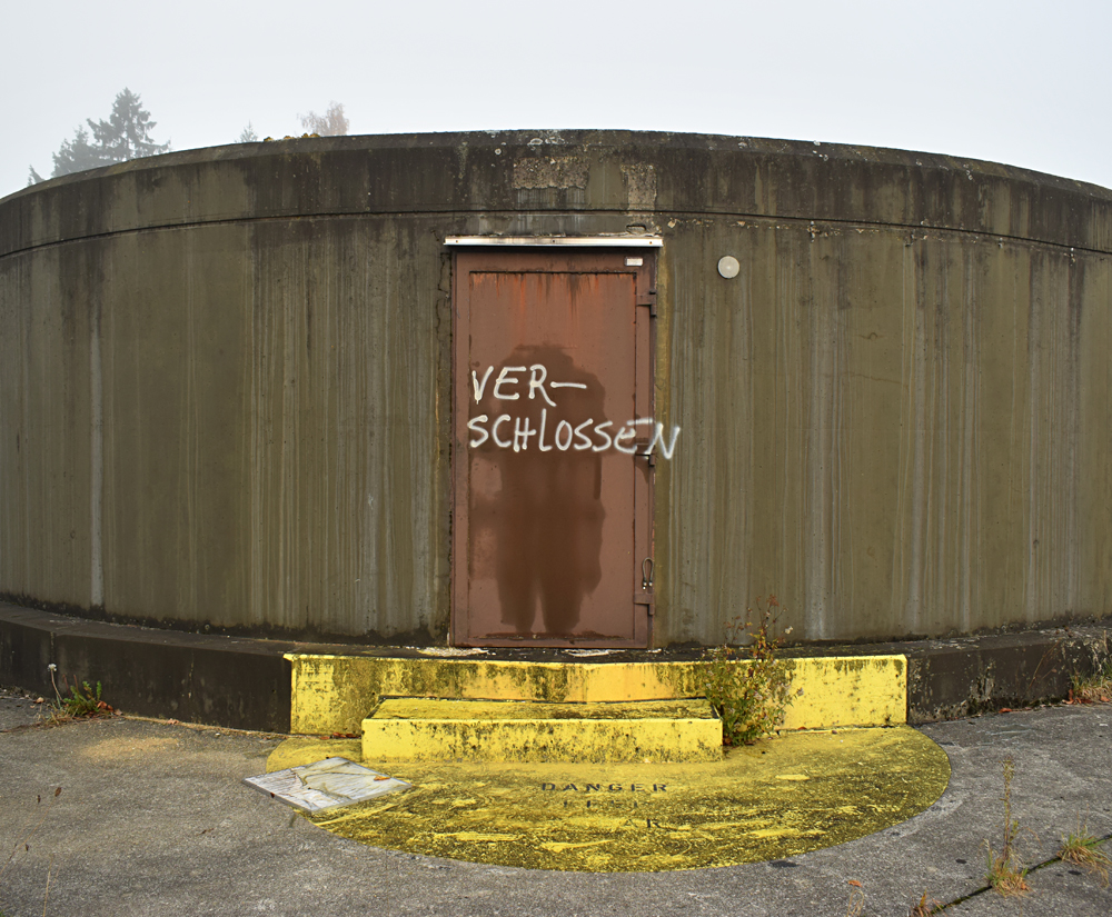 Continuant notre exploration, Guillaume nous informe que selon la carte vue la veille dans le refuge, il y en a un autre non loin de là. Est-il similaire à celui visité la veille ? Impossible à savoir sans y aller, et c’est donc d’un pas tranquille que nous nous dirigeons vers un autre mess (réfectoire), bien plus petit que celui vu la veille. Mais, déception, une fois à l’intérieur, le refuge situé en-dessous s’avère être une simple cave… Remontant, nous profitons de la très belle lumière matinale pour documenter le petit bâtiment. |