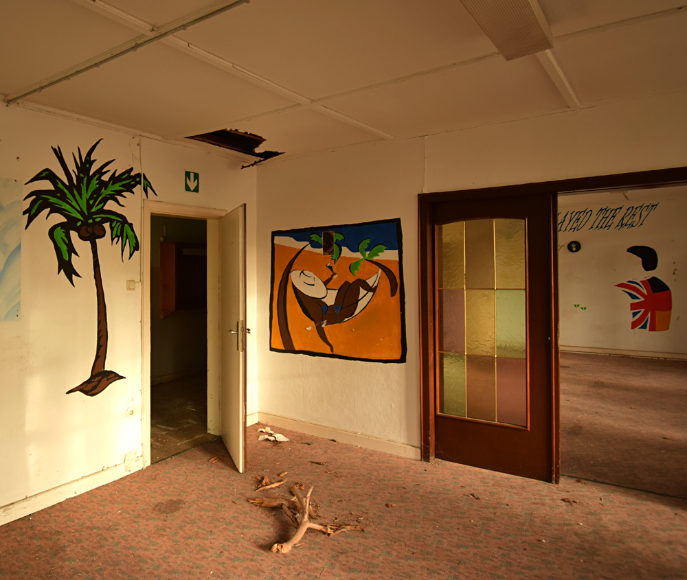 La matinée touchant à sa fin, je sors mon drone et réalise à mon tour quelques clichés de la fascinante scène du bus et des deux véhicules. Je pense aussi à prendre un peu plus d’altitude pour réaliser des clichés de la zone environnante. Ce site est si fascinant, avec sa gigantesque zone pavillonnaire, son refuge, ses églises, son cinéma, sa piscine… Y’a-t-il encore des choses à explorer sur place ? Il serait présomptueux de considérer que nous en avons fait le tour, et au moment de ranger mon drone je songe déjà à y revenir. |