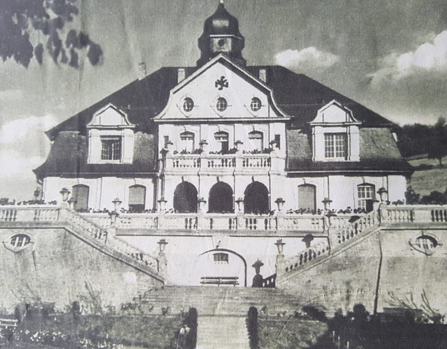 Et maintenant un peu d’histoire grâce à la page Wikipédia de ce site : le «Viktoriastift» (Institut Viktoria) fut construit de 1919 à 1922 selon les plans de l’architecte Ludwigshafen August Greifzu pour l’homme d’affaires Heinrich Lieser. Composé de deux bâtiments agricoles et d’un magnifique manoir, le bâtiment combine des éléments stylistiques de l’époque historiciste de manière classique. En 1926, Heinrich Lieser fait faillite et le domaine devient un sanatorium pour enfants. Ci-dessous une photo non datée (source) : |
