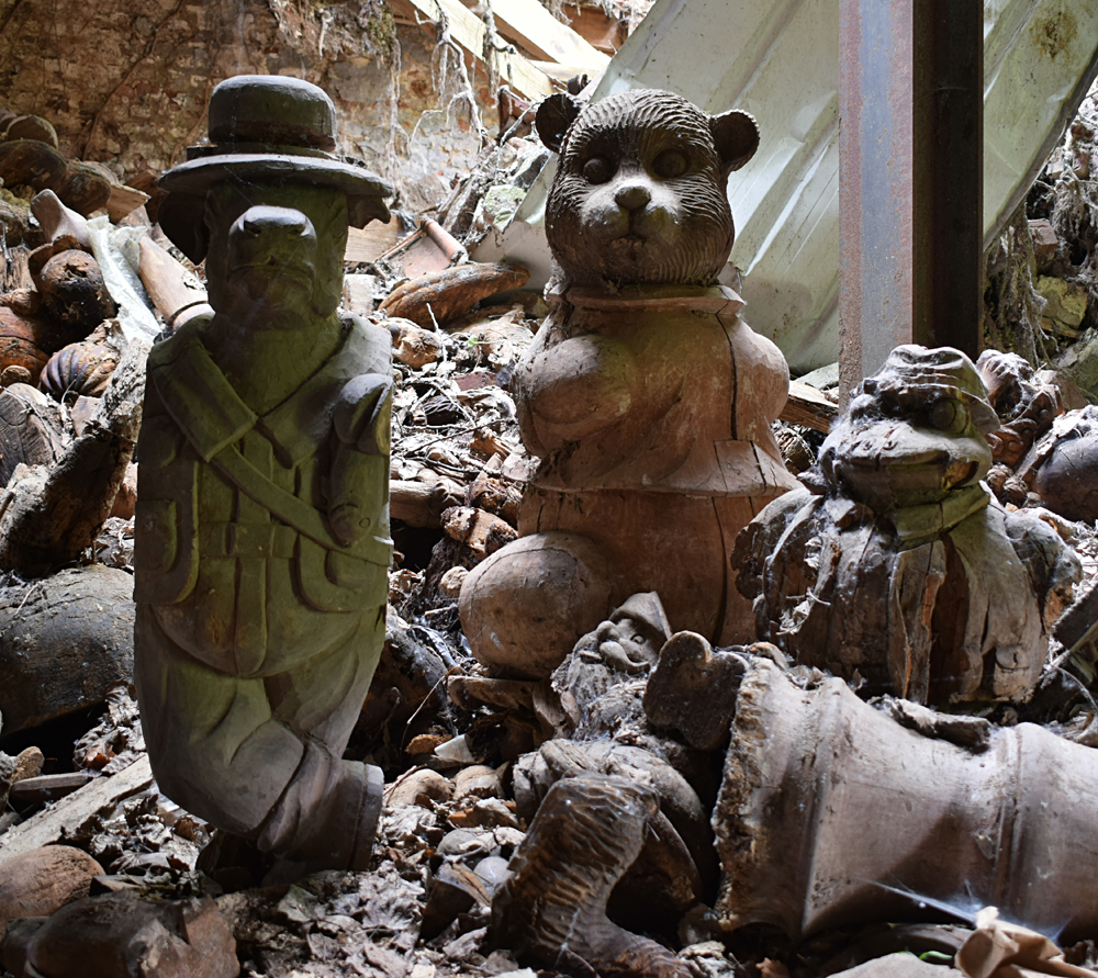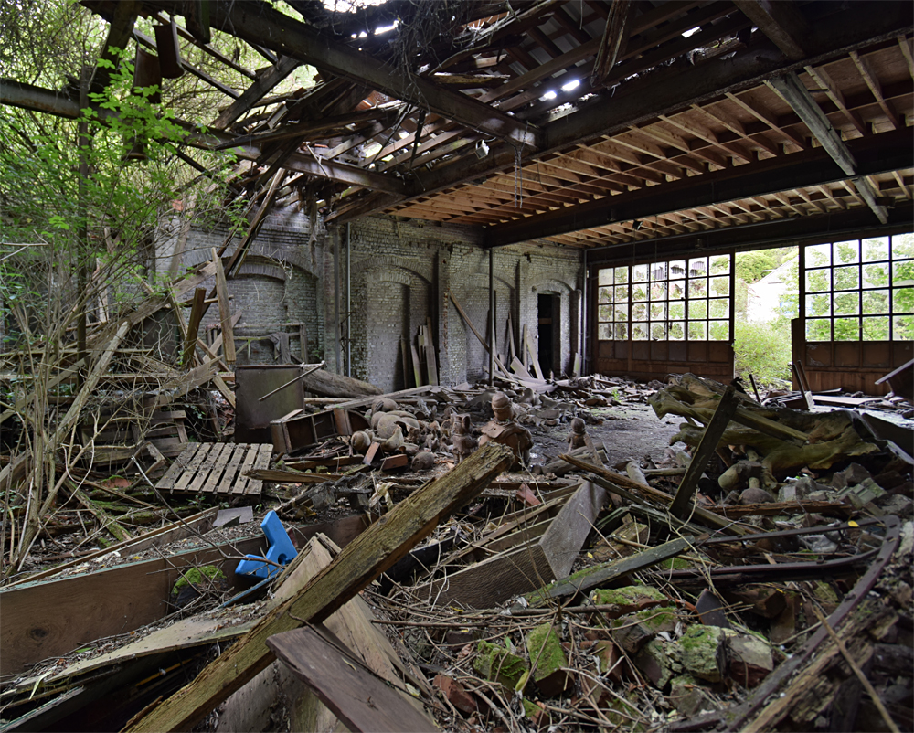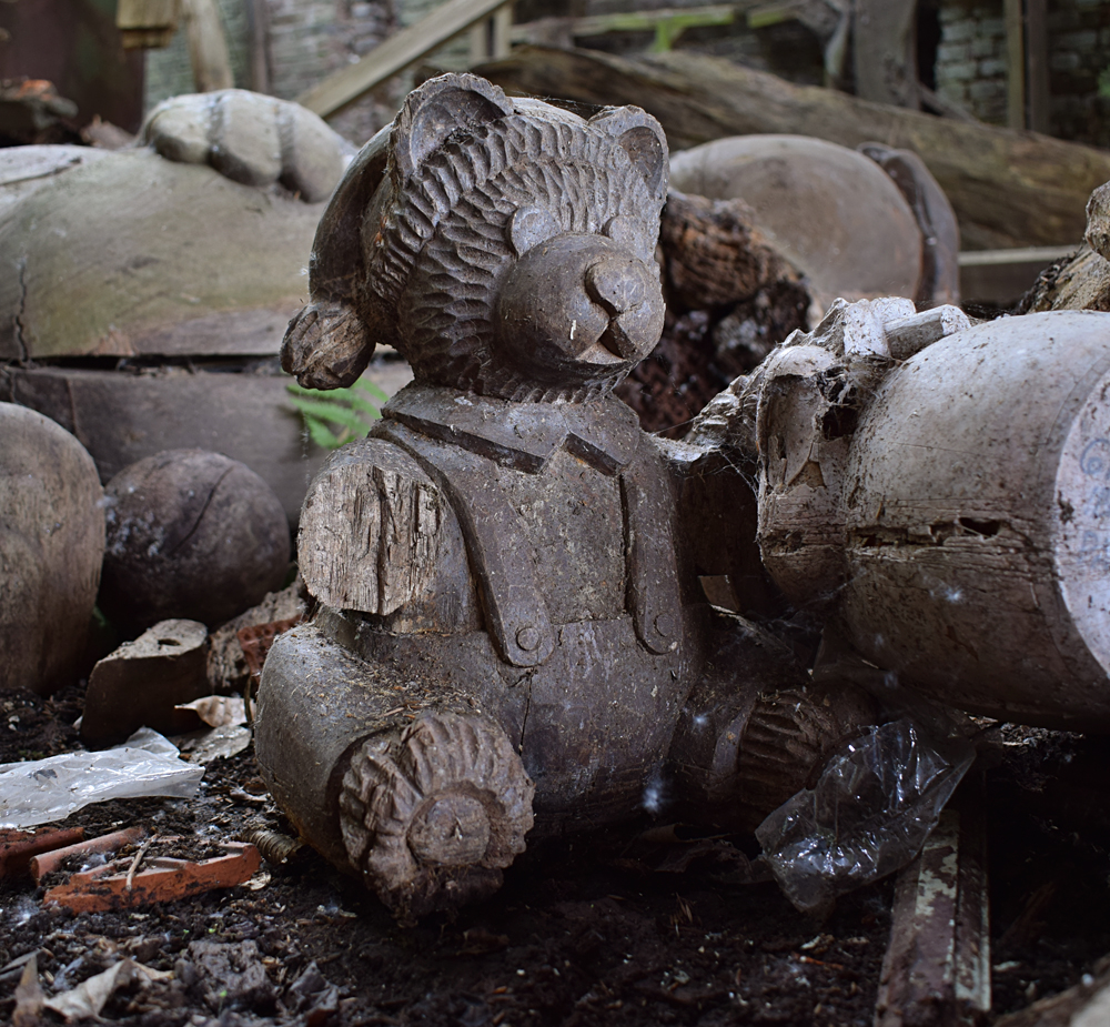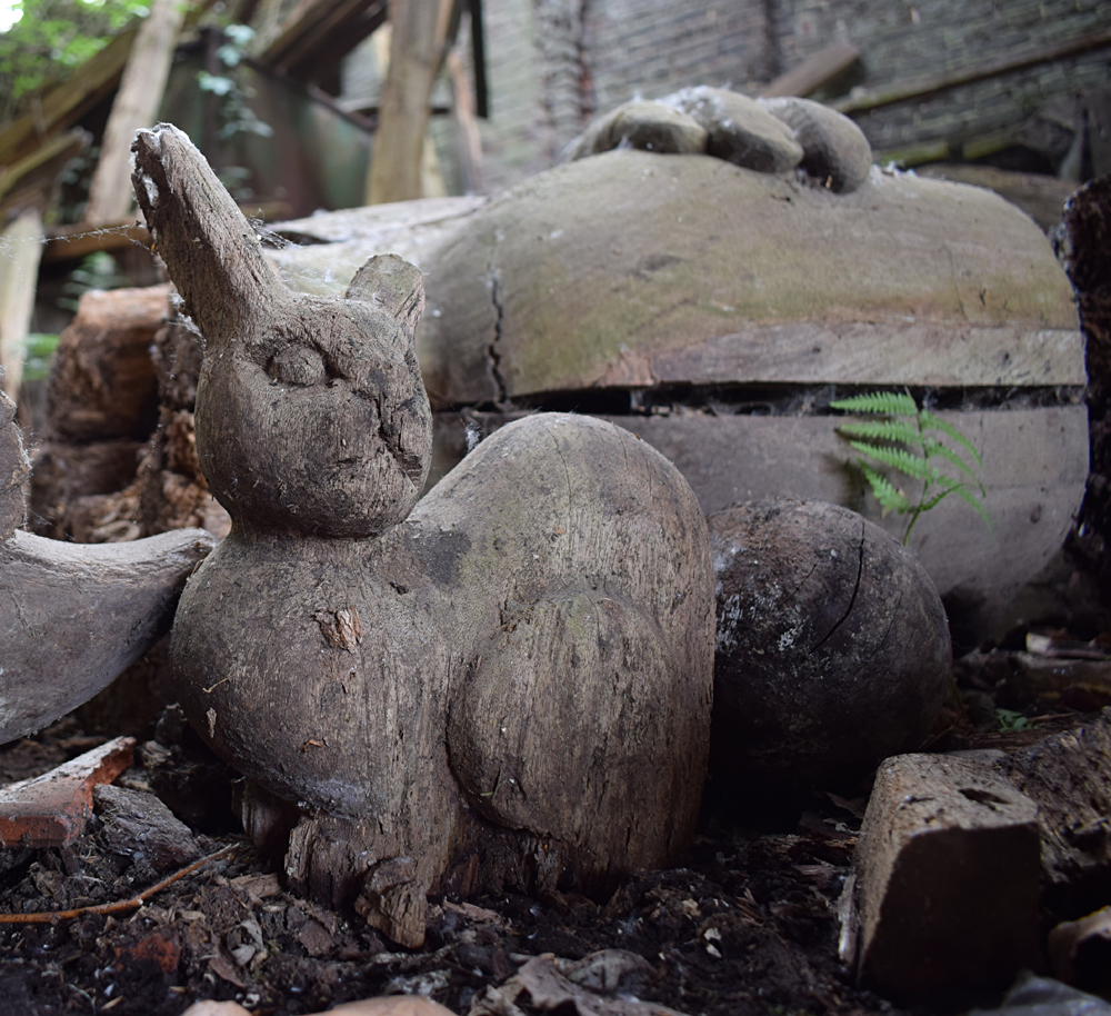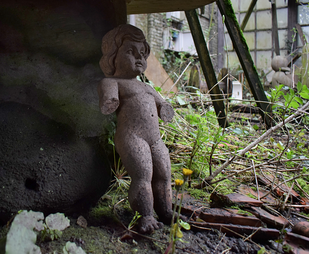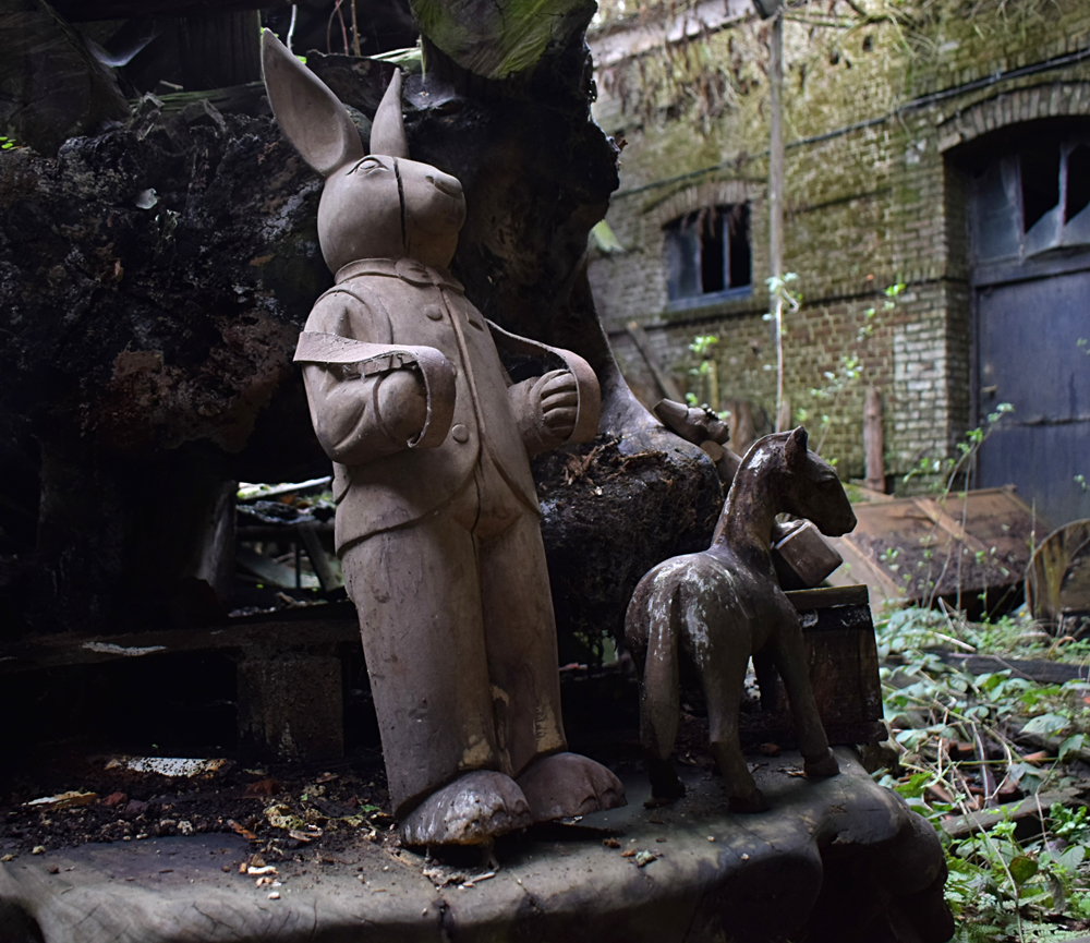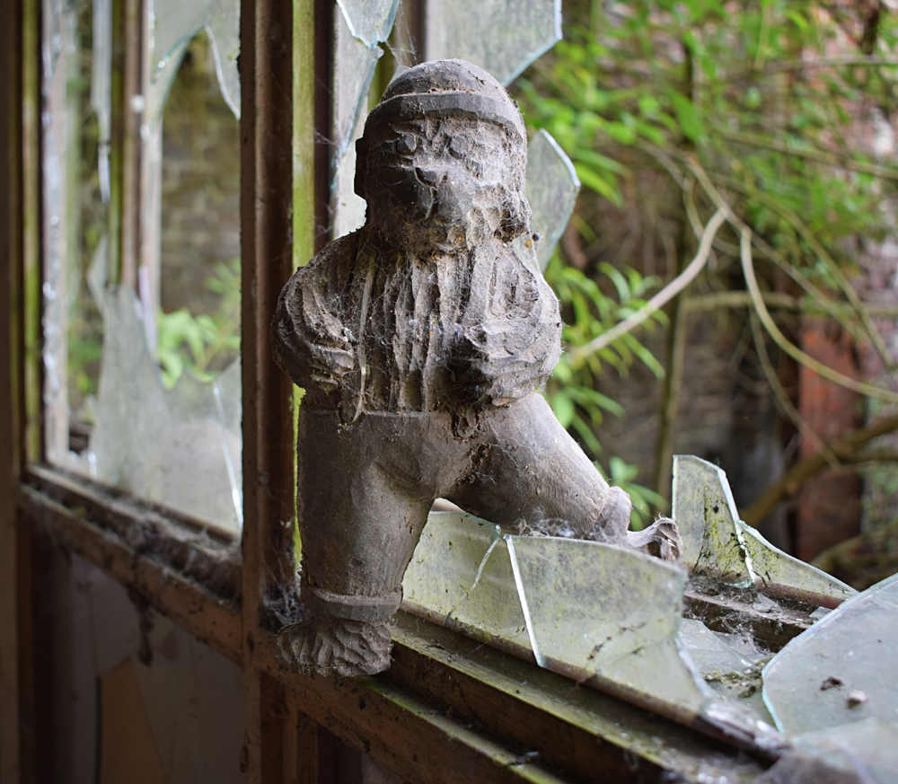 Ci-dessous les photos prises en 2025 lors de ma deuxième visite. Un spectacle assez triste : partie «habitation» défoncée (et pas mal vidée), vitres brisées absolument partout… Six années d’écart durant lesquelles de nombreux visiteurs indélicats sont passés. Malgré ce chaos, j’ai tout de même documenté les sculptures, qui, même si elles étaient en vrac, étaient encore là. Quel est l’avenir de ce site ? Depuis 2019 la ville parle de le démolir… |