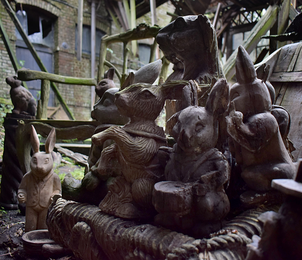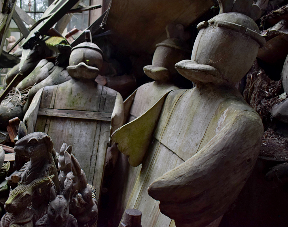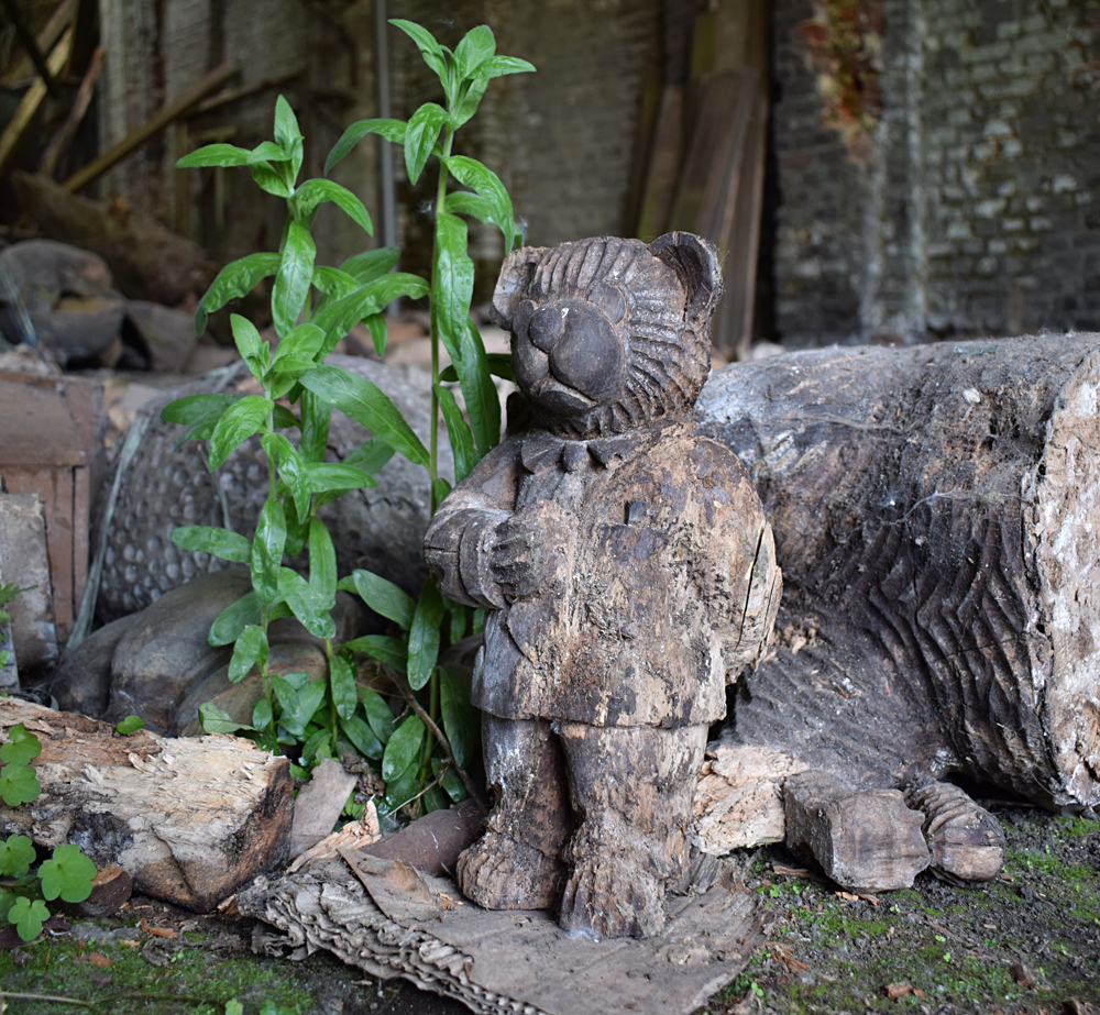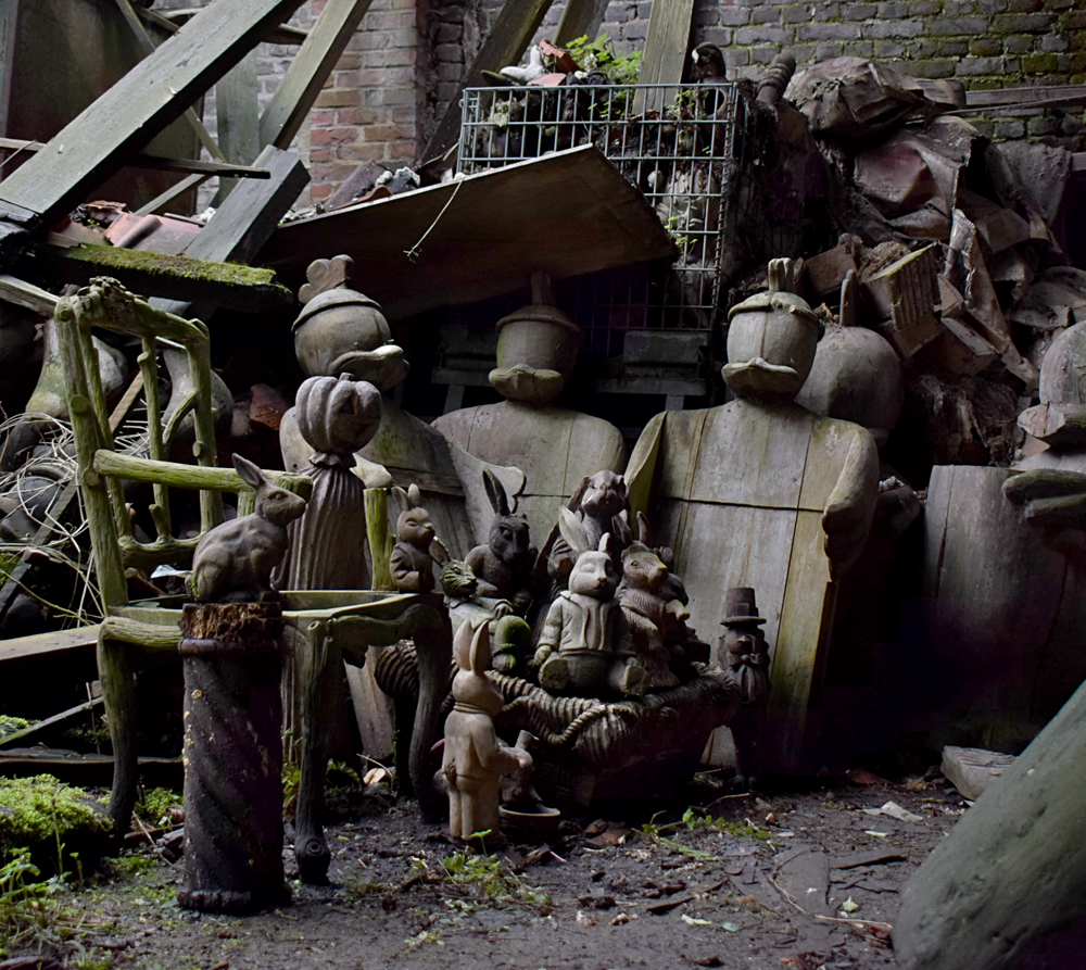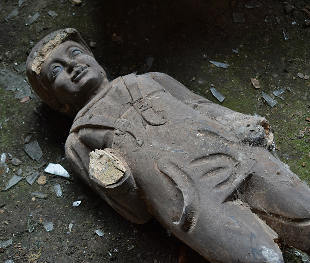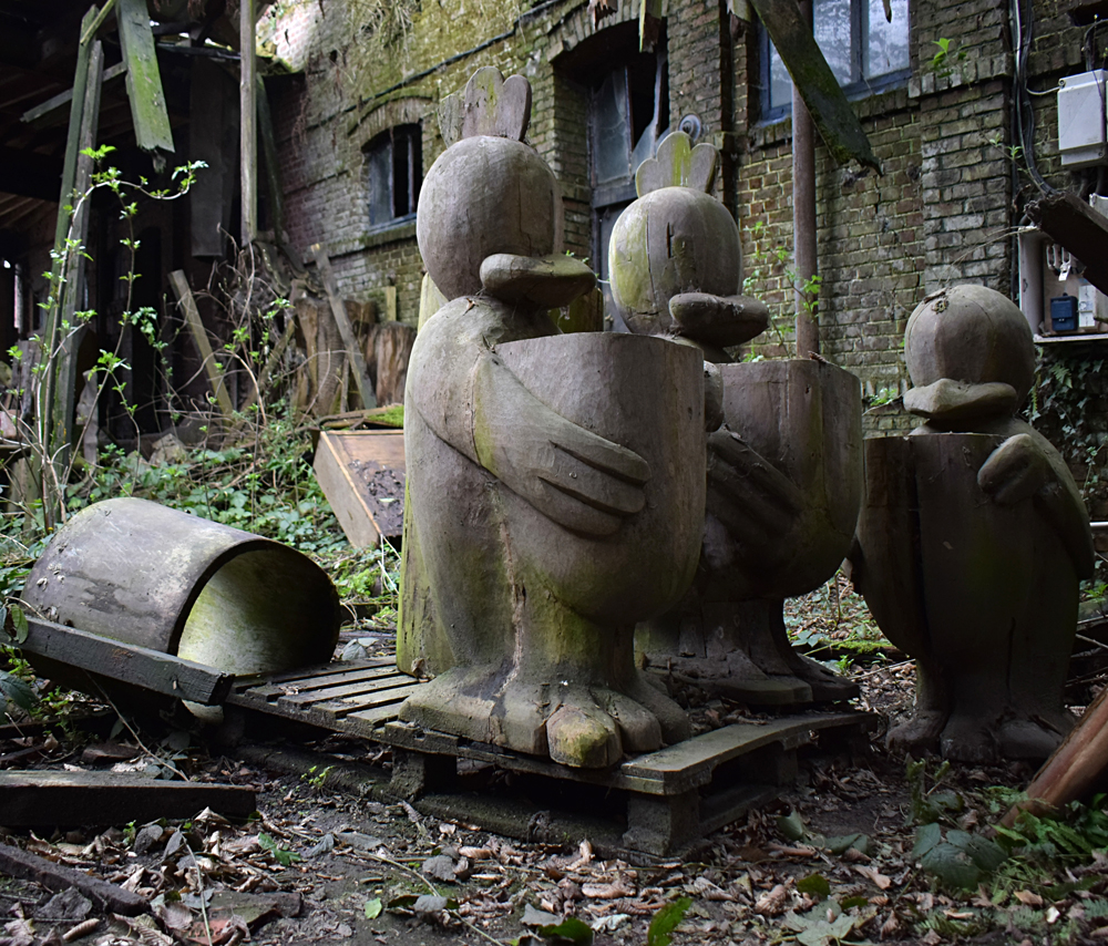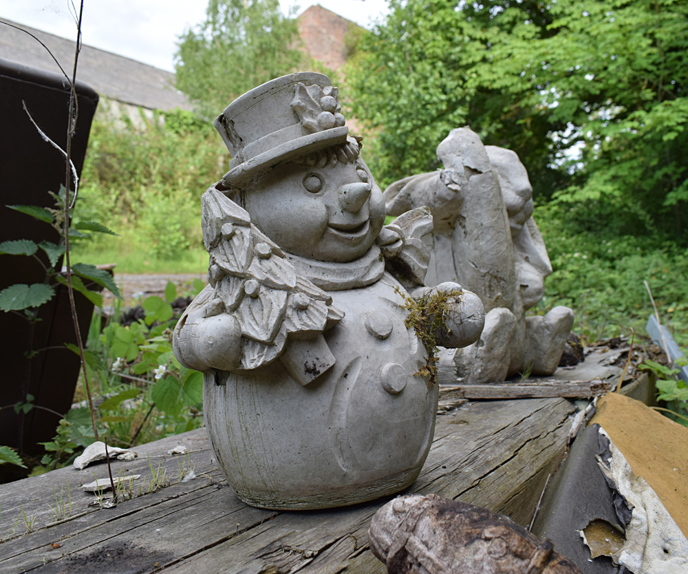 Ci-dessous les photos prises en 2025 lors de ma deuxième visite. Un spectacle assez triste : partie «habitation» défoncée (et pas mal vidée), vitres brisées absolument partout… Six années d’écart durant lesquelles de nombreux visiteurs indélicats sont passés. Malgré ce chaos, j’ai tout de même documenté les sculptures, qui, même si elles étaient en vrac, étaient encore là. Quel est l’avenir de ce site ? Depuis 2019 la ville parle de le démolir… |
