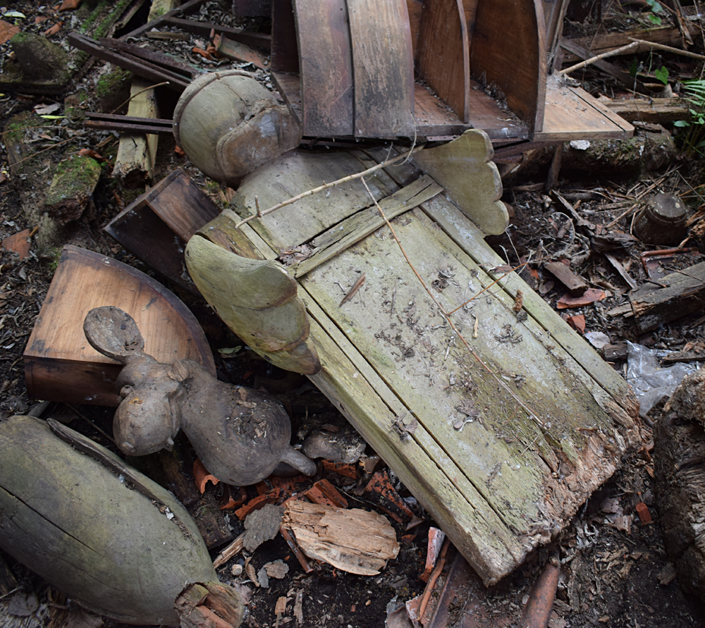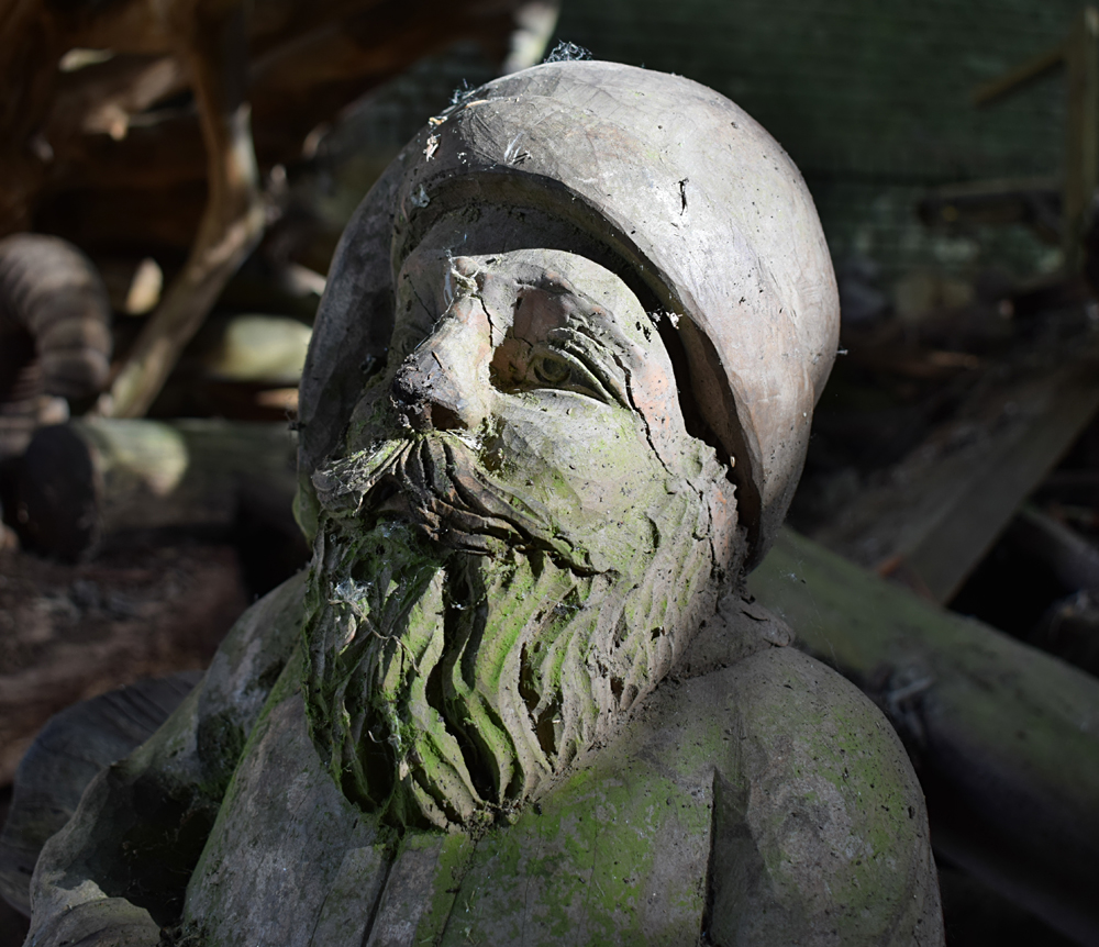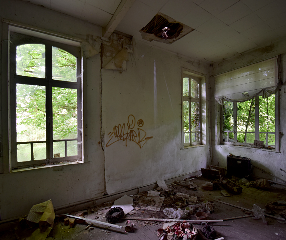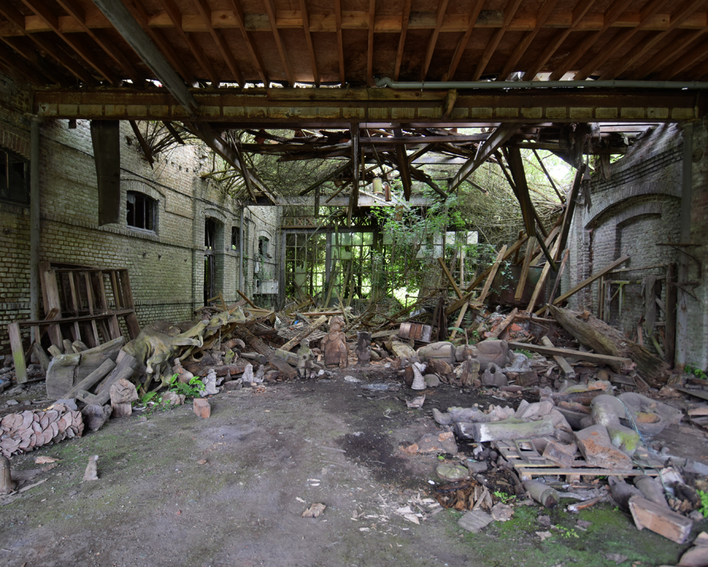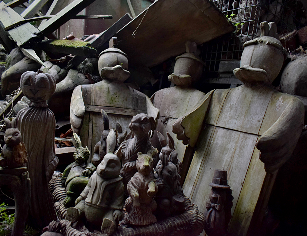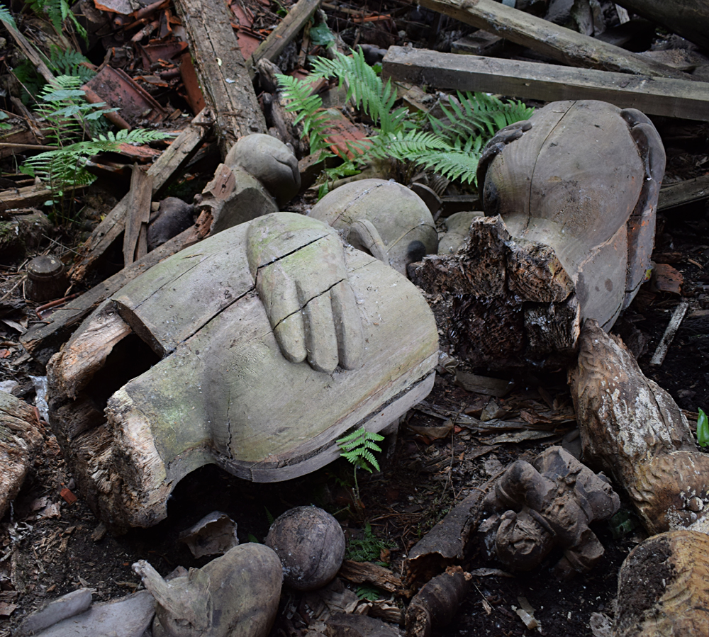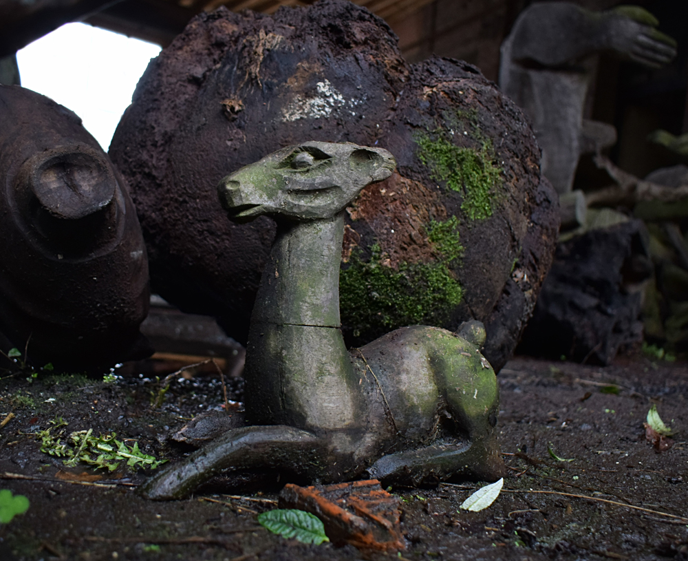 Ci-dessous les photos prises en 2025 lors de ma deuxième visite. Un spectacle assez triste : partie «habitation» défoncée (et pas mal vidée), vitres brisées absolument partout… Six années d’écart durant lesquelles de nombreux visiteurs indélicats sont passés. Malgré ce chaos, j’ai tout de même documenté les sculptures, qui, même si elles étaient en vrac, étaient encore là. Quel est l’avenir de ce site ? Depuis 2019 la ville parle de le démolir… |